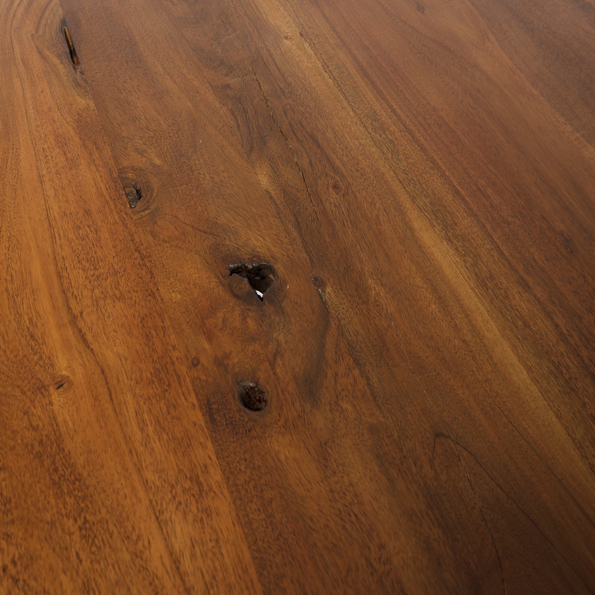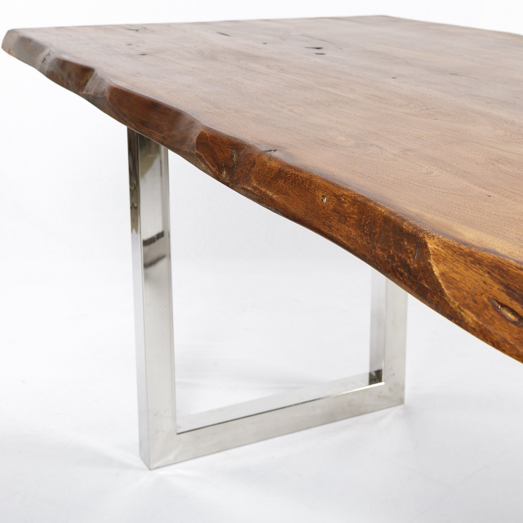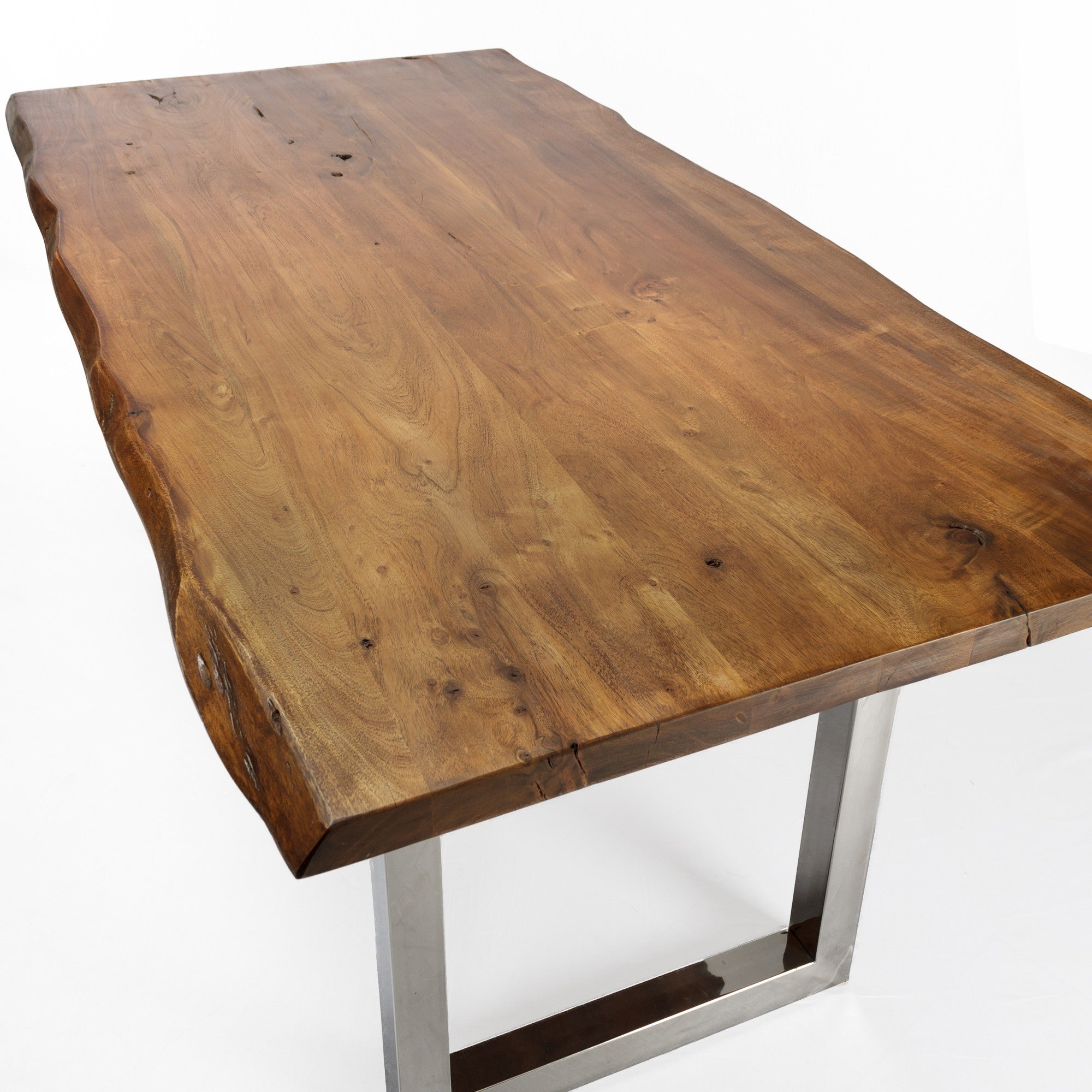 Schwerer und massiver Esstisch mit Baumkante Massives Akazienholz im Stone-Finish in gewachsener Ausführung Dieser Esstisch - Tisch ist in einer sehr massiven Ausführung, die Tischplatte besteht aus gewachsenem Akazienholz und erhält hierdurch eine lebendige und wuchtige Optik. Jede Tischplatte wird mit Baumkante geliefert und ist in Form und Optik ein Unikat, kein Tisch gleicht dem Anderen. Das Akazienholz ist langlebig und im Stone-Finisch gebeizt / geölt.