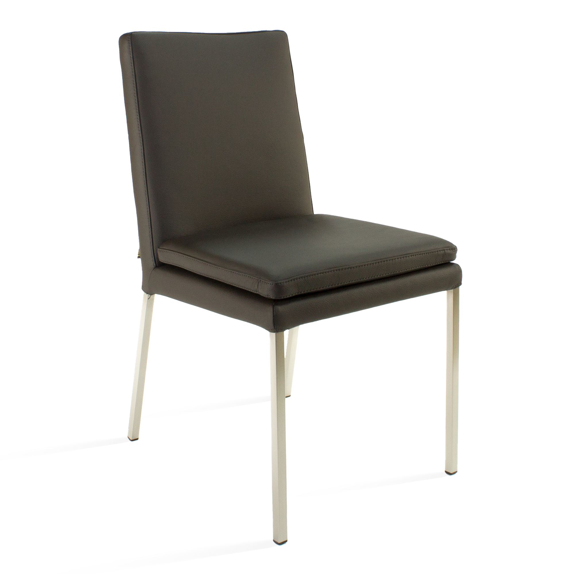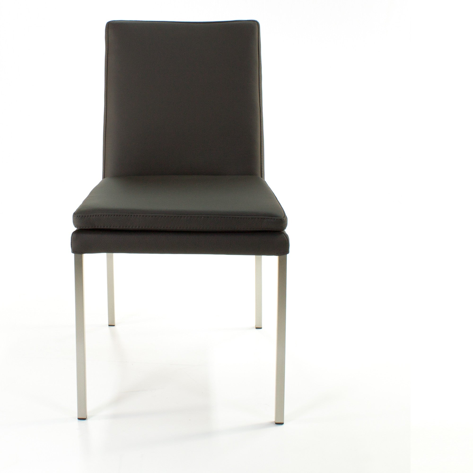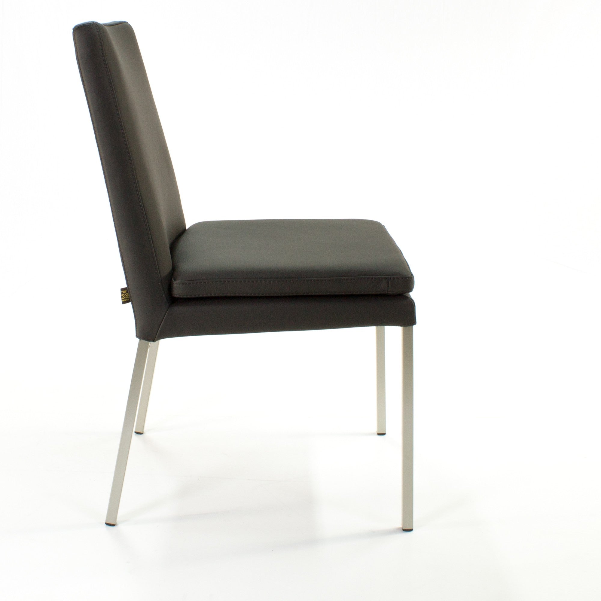 Ein stabiler und hochwertiger Lederstuhl mit gebürsteten Edelstahl Füßen.