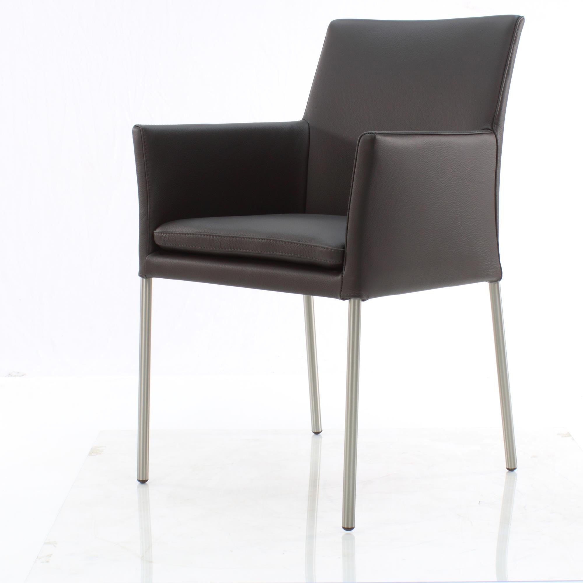 SIX Armlehnstuhl Lederstuhl Ledersessel Ricco Braun, Edelstahl