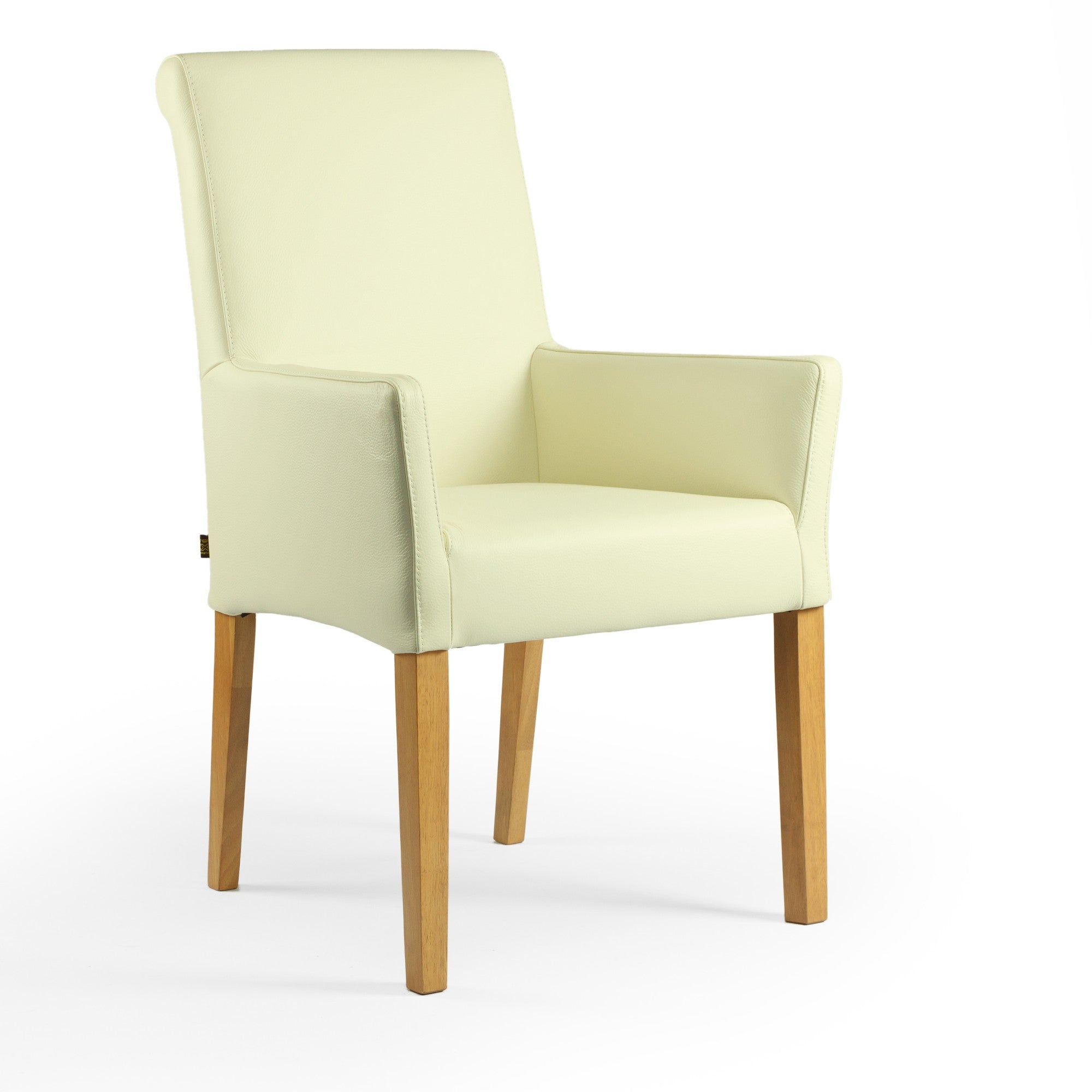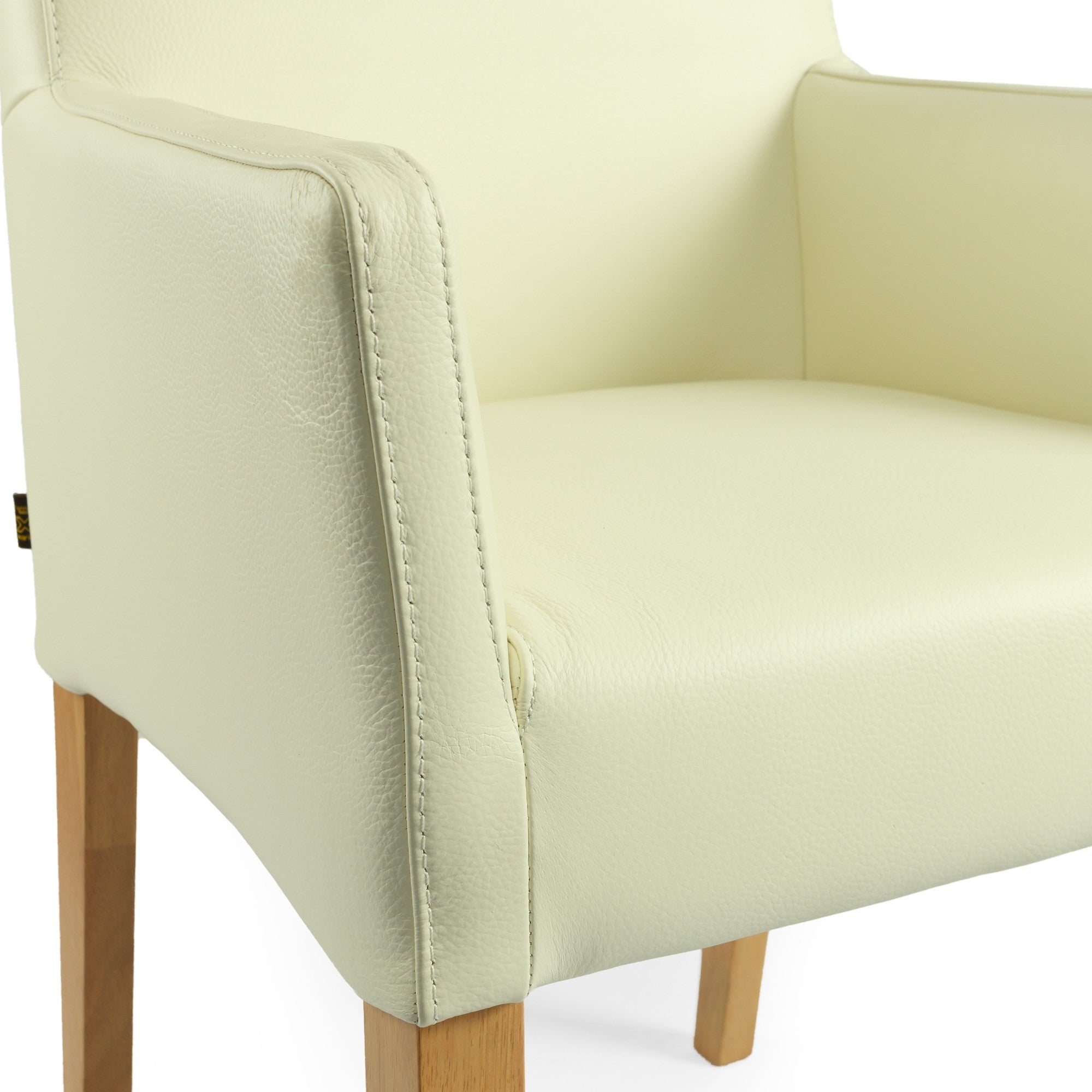 Lederstuhl - Armlehnstuhl Galdo Rindsleder Weiß (Eierschale) Hochwertiger Armlehnstuhl in ECHTEM RINDSLEDER mit massivem Hartholz Stuhl - Aufbau. Dieser Armlehnstuhl - Polsterstuhl zeichnet sich durch seine hochwertige Verarbeitung und dem sehr guten Sitzkomfort aus. Dies wird erreicht durch einen extra starken Stuhl-Aufbau mit sehr massiven Stuhlbeinen und einem langlebigen Federkern im Sitz. Dieser ist auf einer festen Latex-Vergurtung aufgebracht und mit einem festen Schaumkern,mit einem hohen Raumgewicht, aufgepolstert.