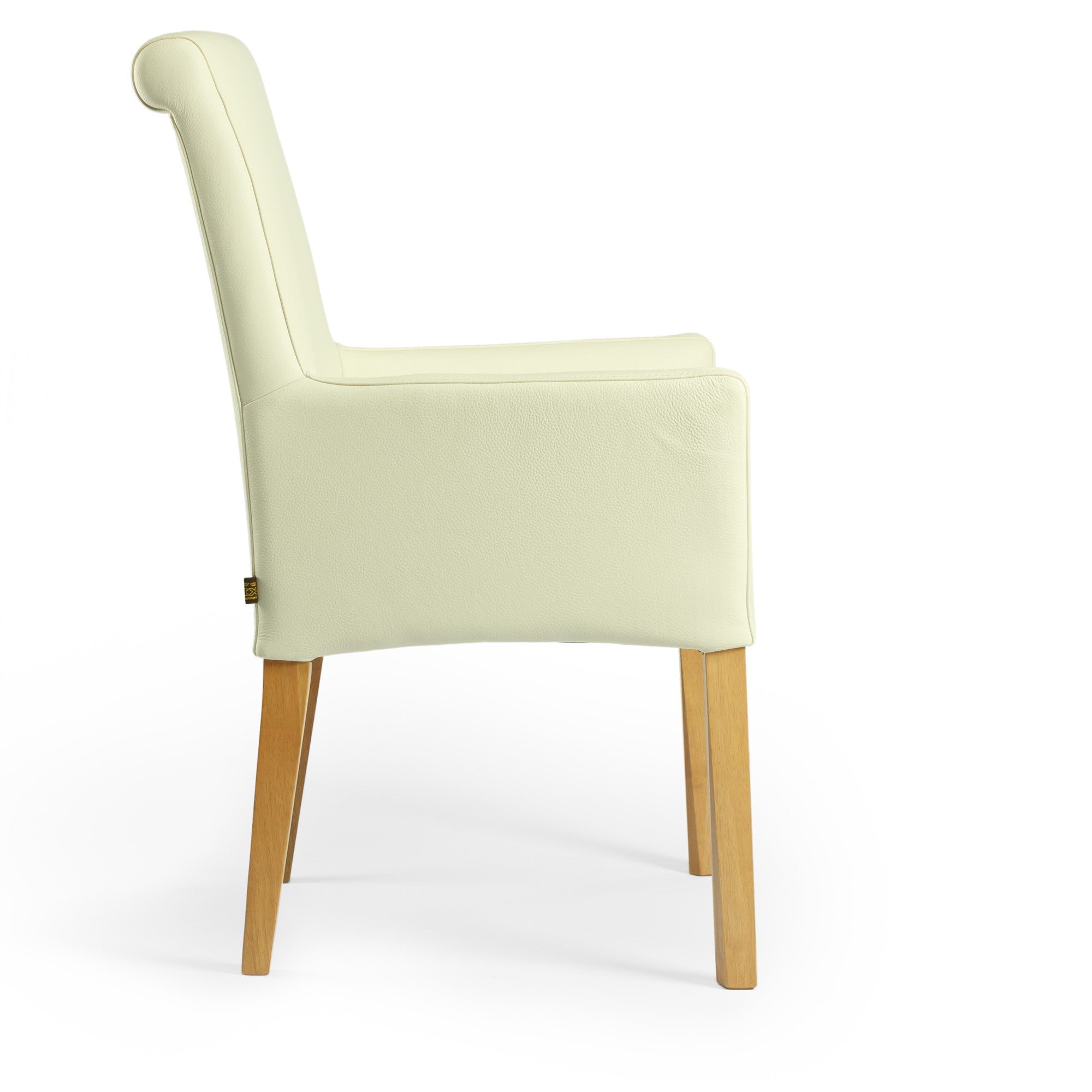 SIX Ledersessel Armlehnstuhl Galdo Creme Weiß Eiche