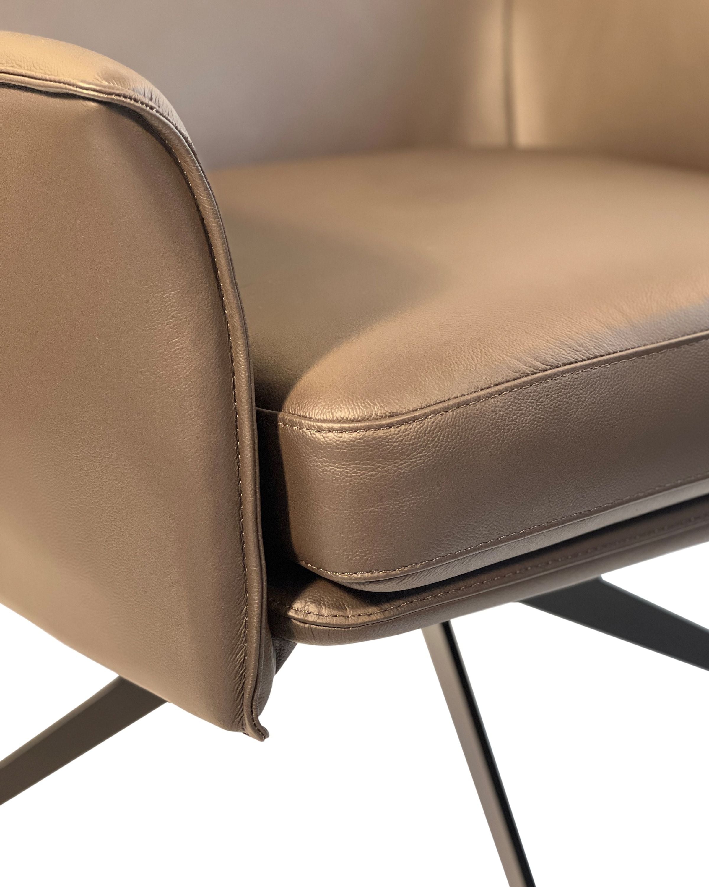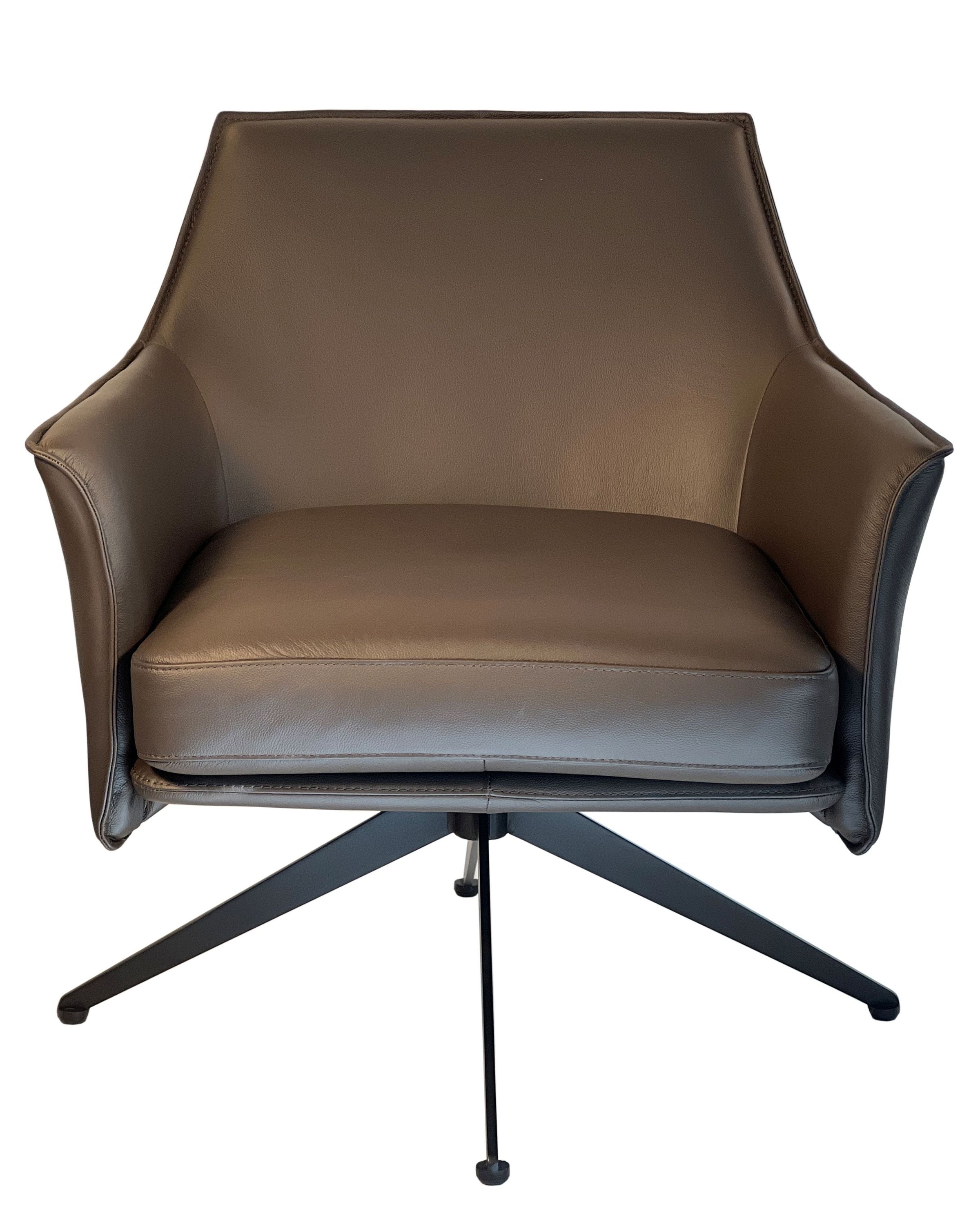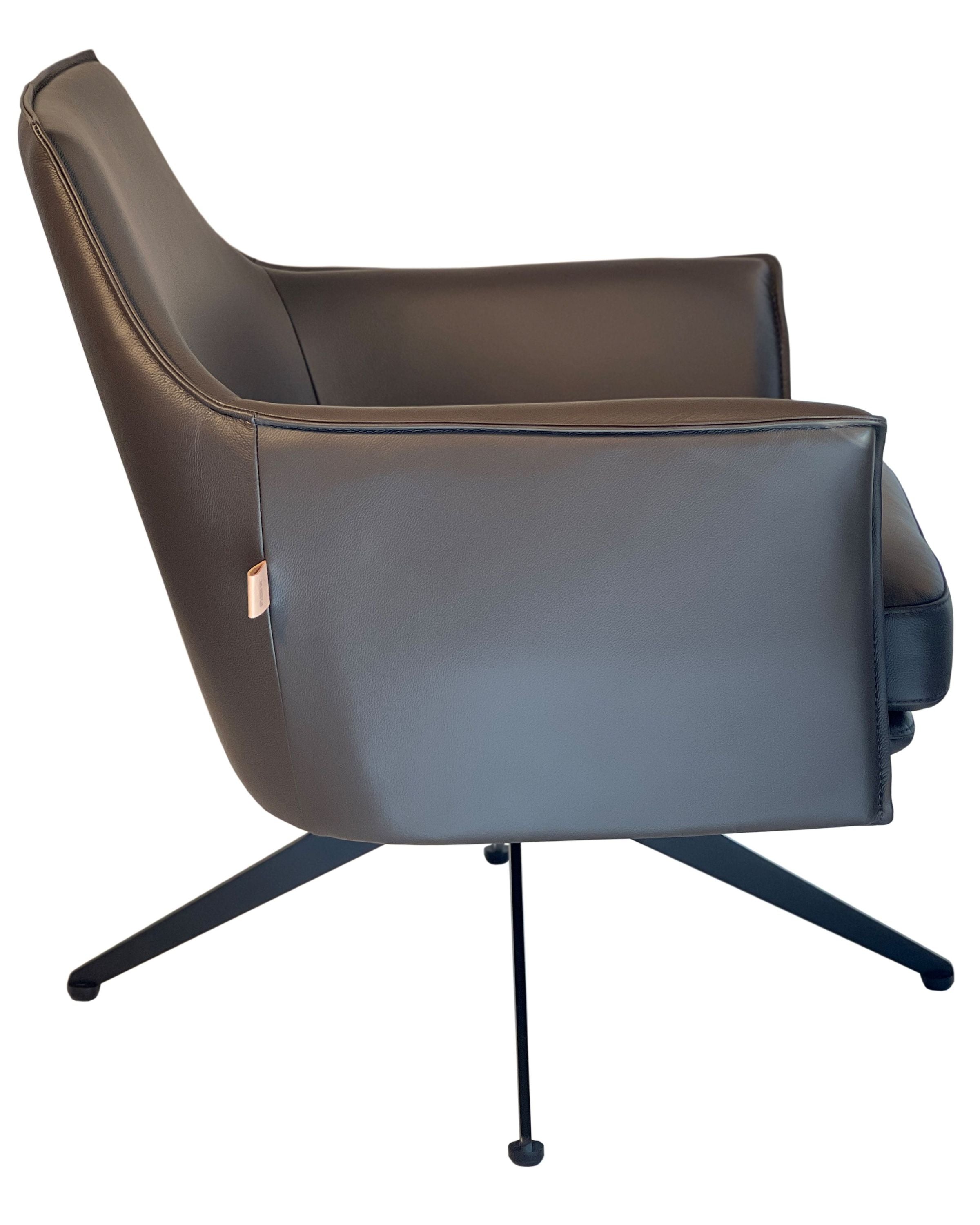 SIX Ledersessel Dreh-Club-Sessel Aurio Braun, Metall
