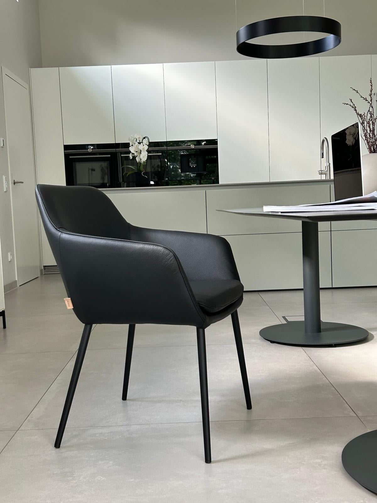 SIX Lederstuhl Armlehnstuhl Miyos Schwarz, Metall