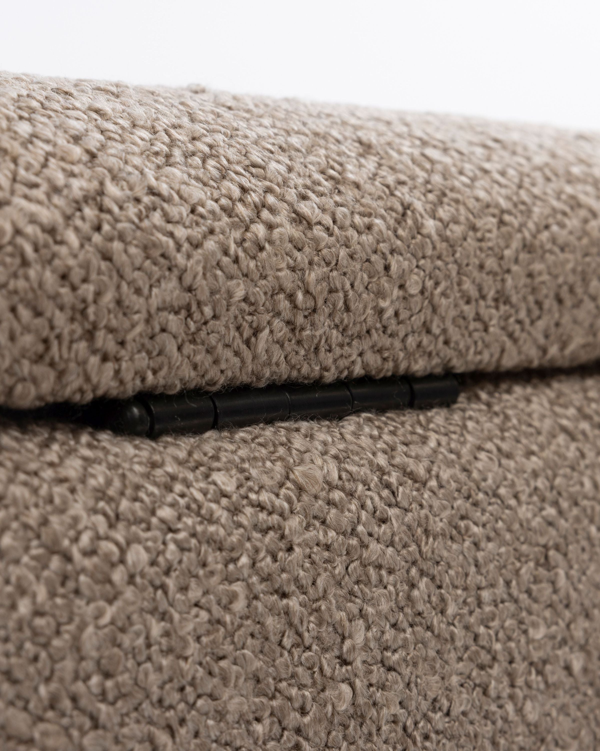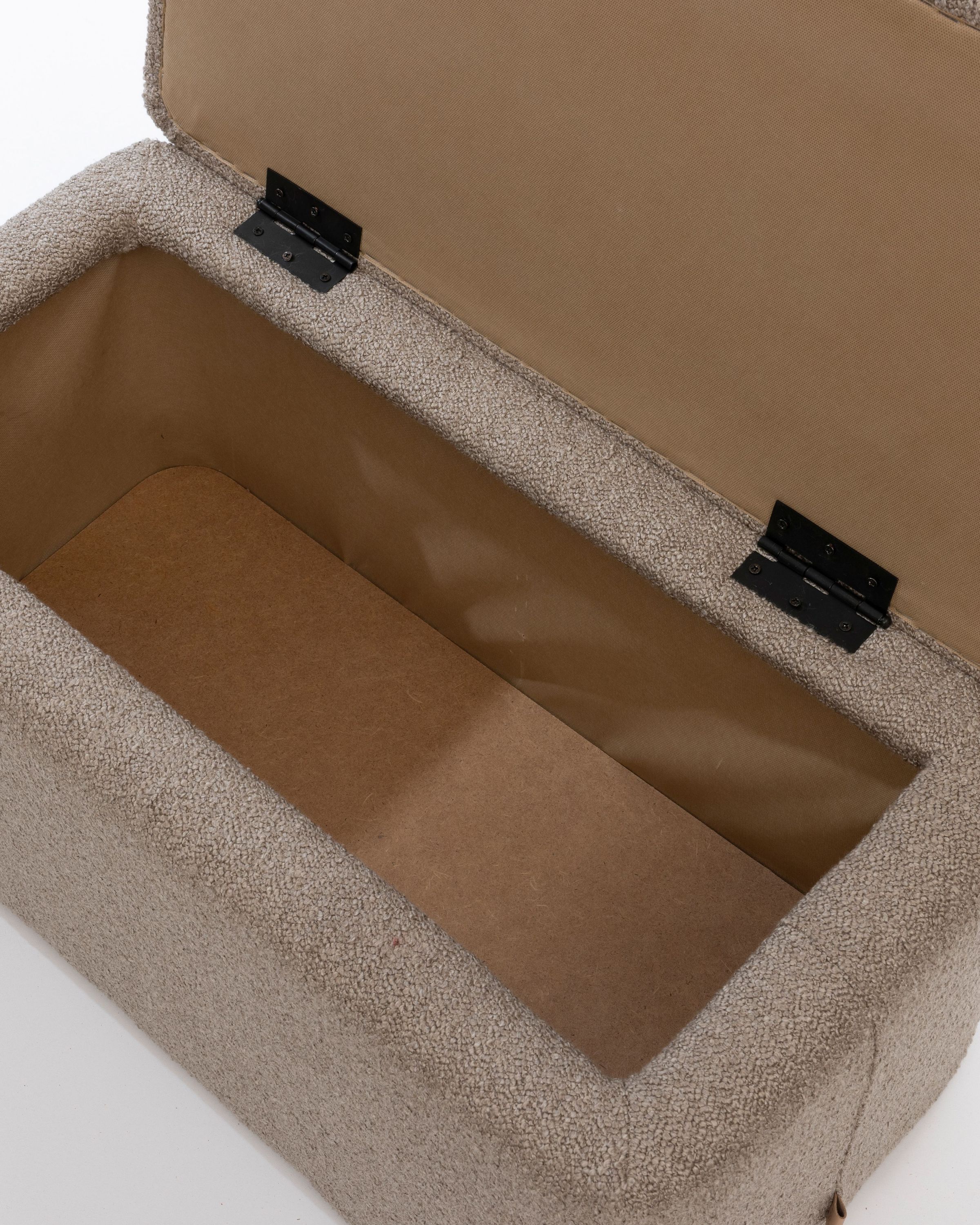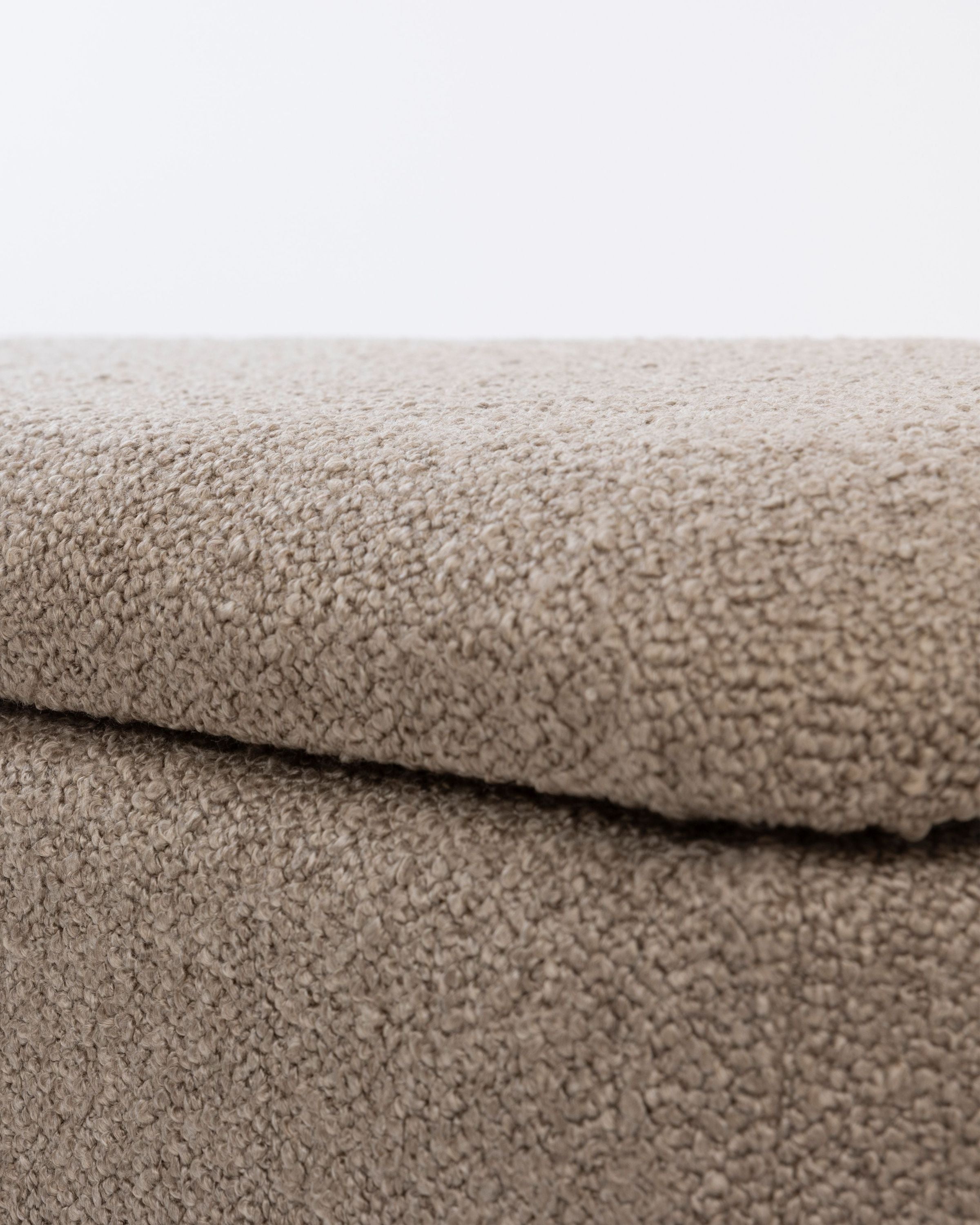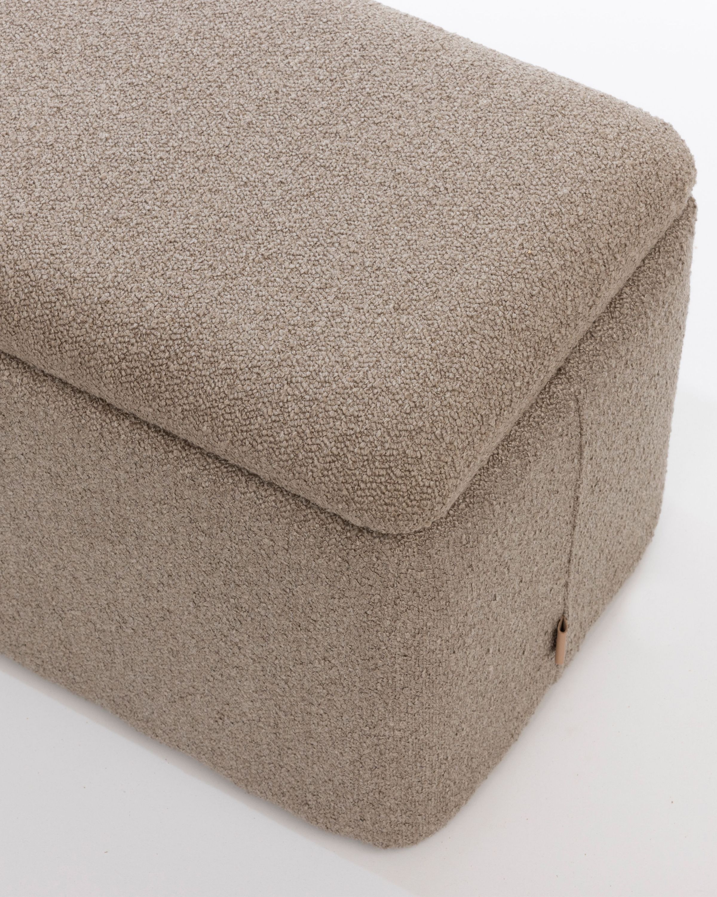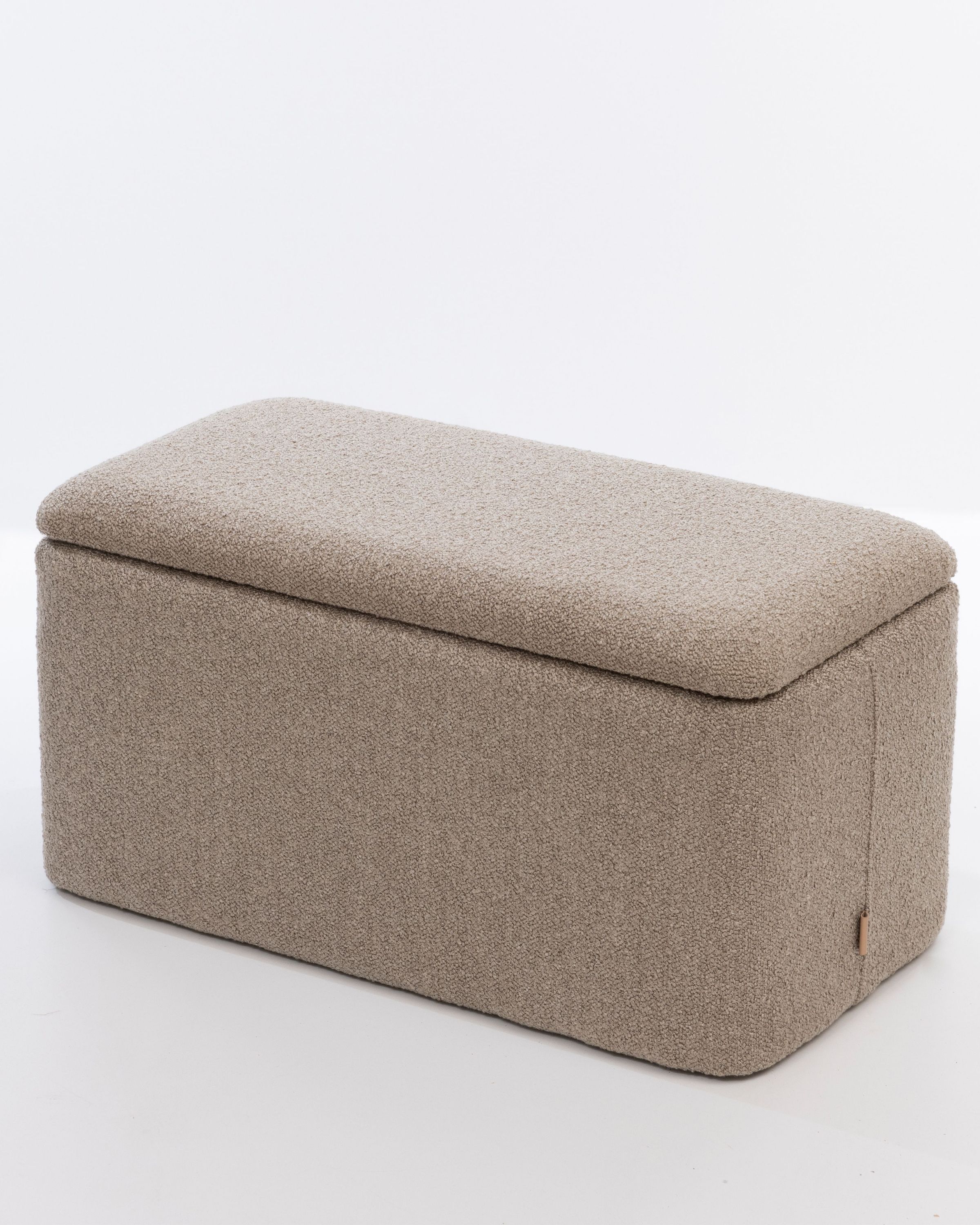Rechteckiger Polsterhocker mit Stauraum – Sitzhocker – Fußhocker Bouclé Stoff Hellbraun Dieser stilvolle und funktionale Polsterhocker ist mit einem hochwertigen Bouclé-Stoff in Hellbraun bezogen und bietet zusätzlichen Stauraum. Der Stoff verleiht dem Hocker eine moderne und elegante Ausstrahlung, während das weiche Bouclé-Material für ein gemütliches und komfortables Sitzgefühl sorgt. Die stabile Konstruktion aus hochwertigem Holz sorgt für Langlebigkeit und Robustheit.