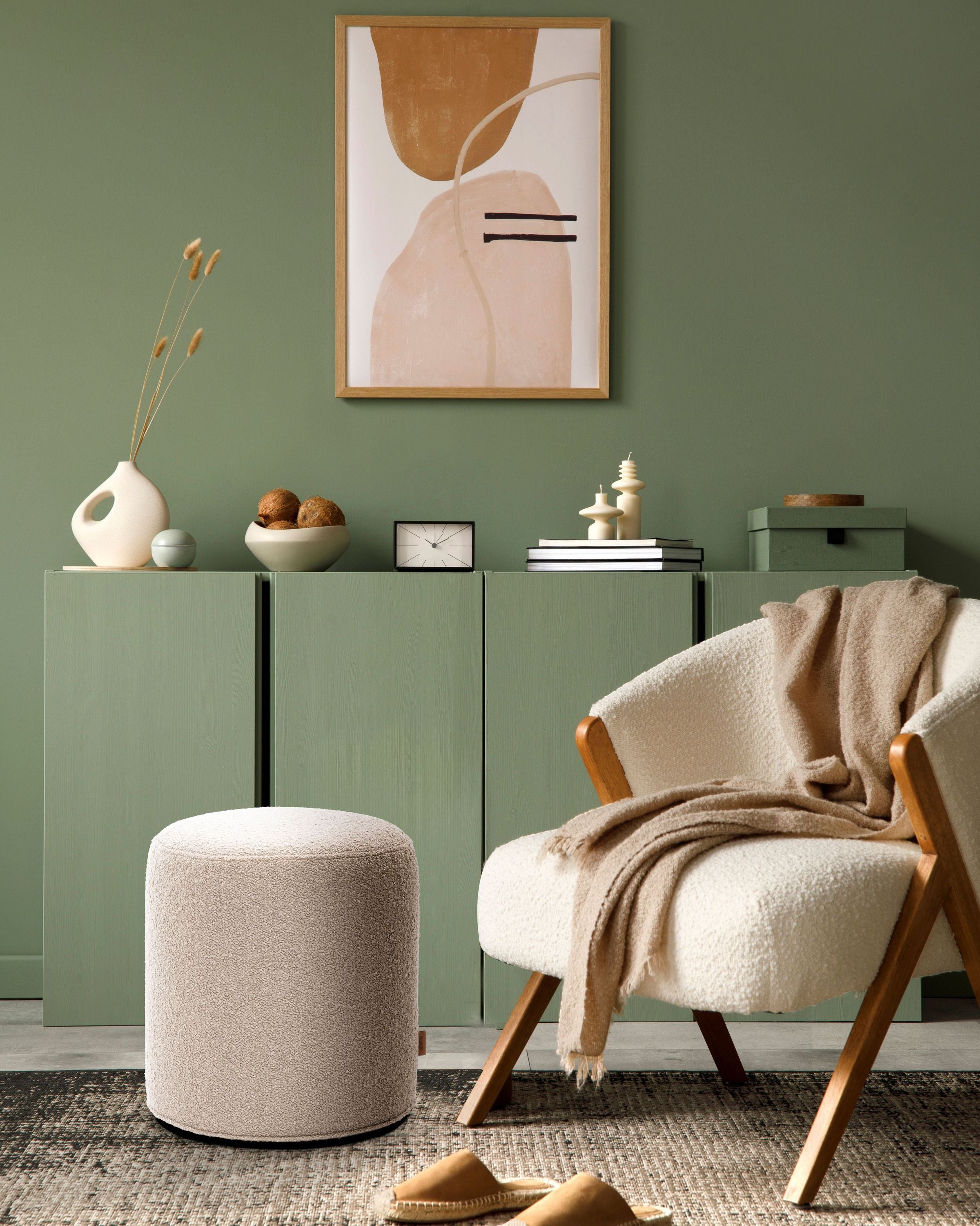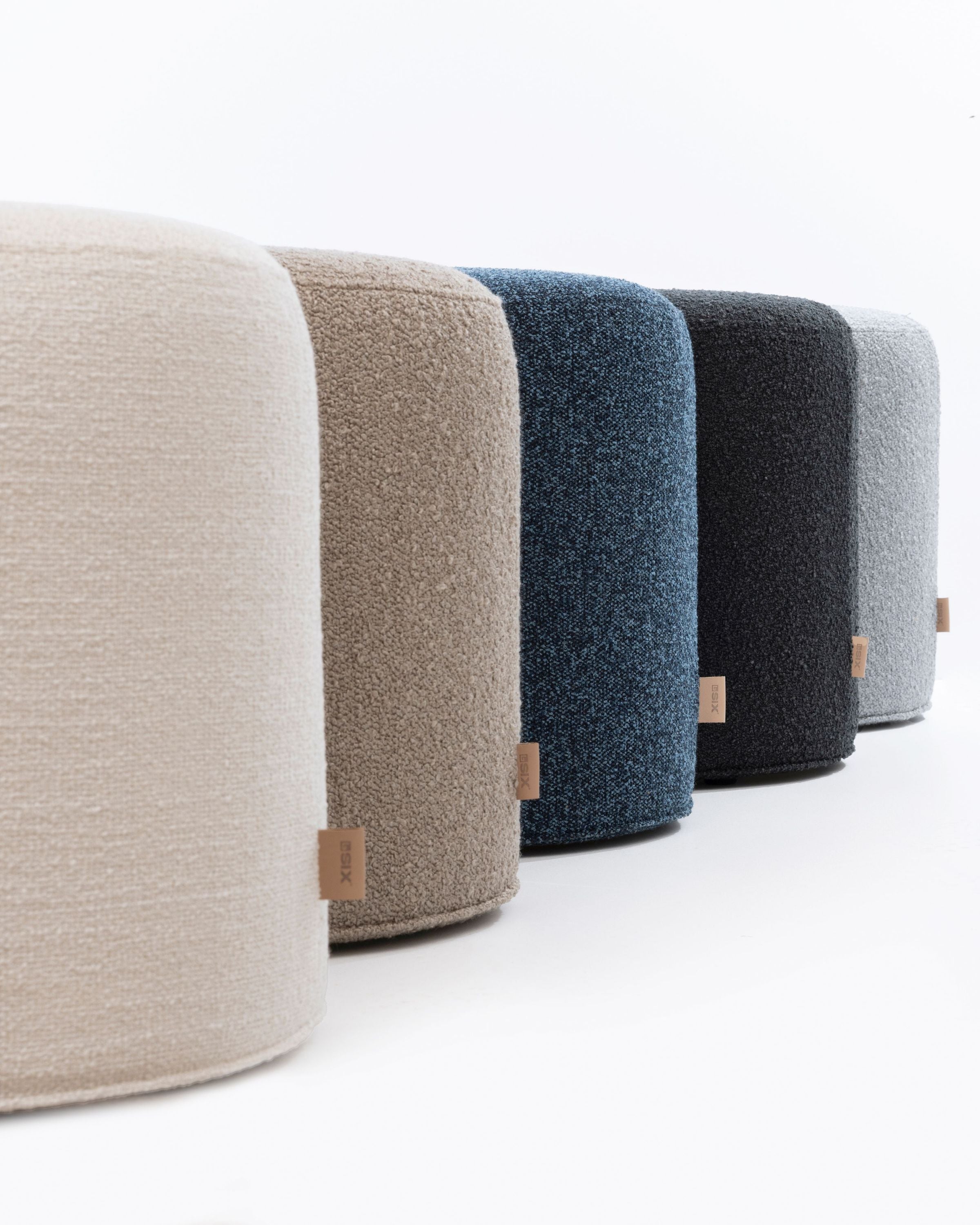 SIX Polsterhocker Fußhocker rund 42x40 Stoff soft hell Braun