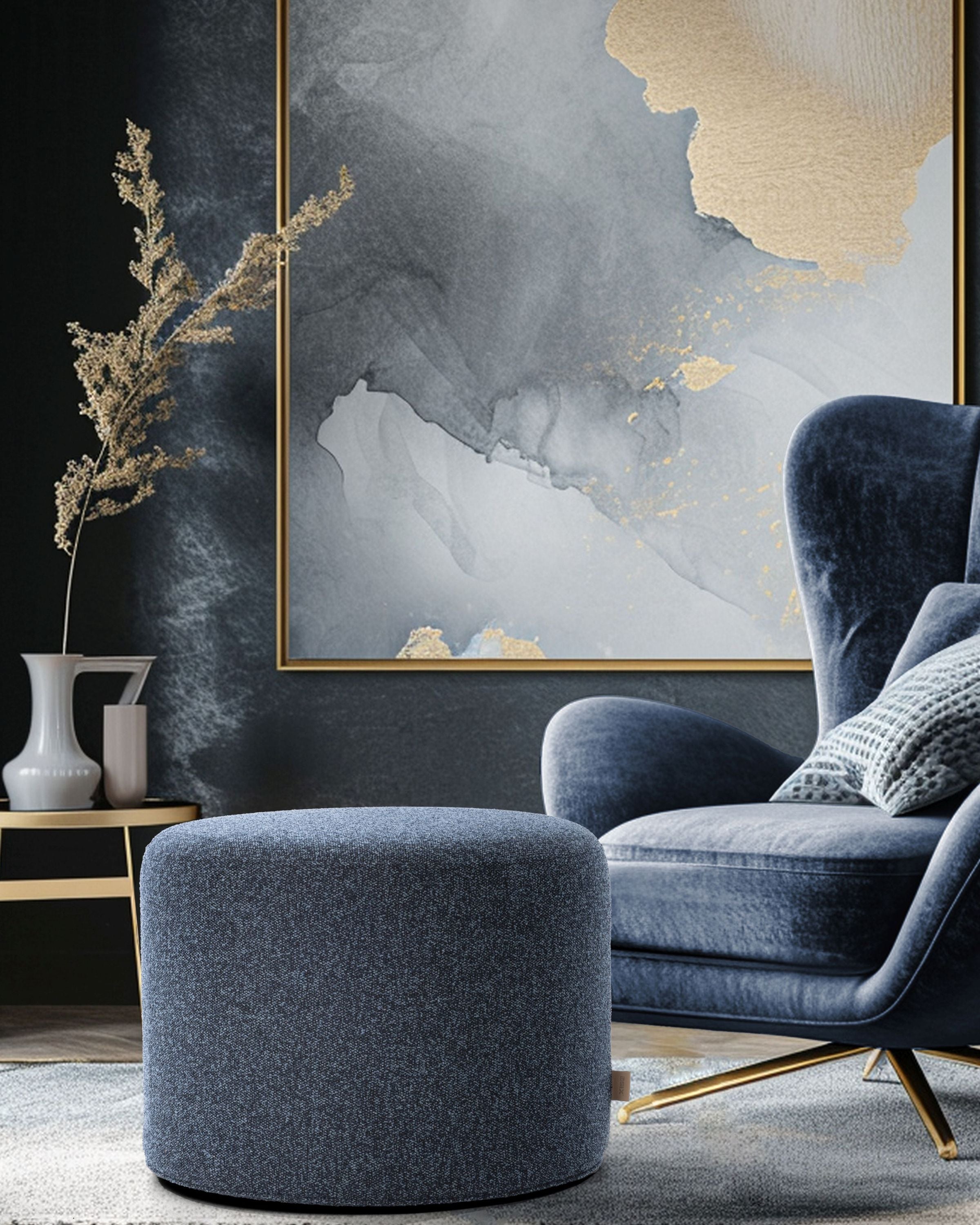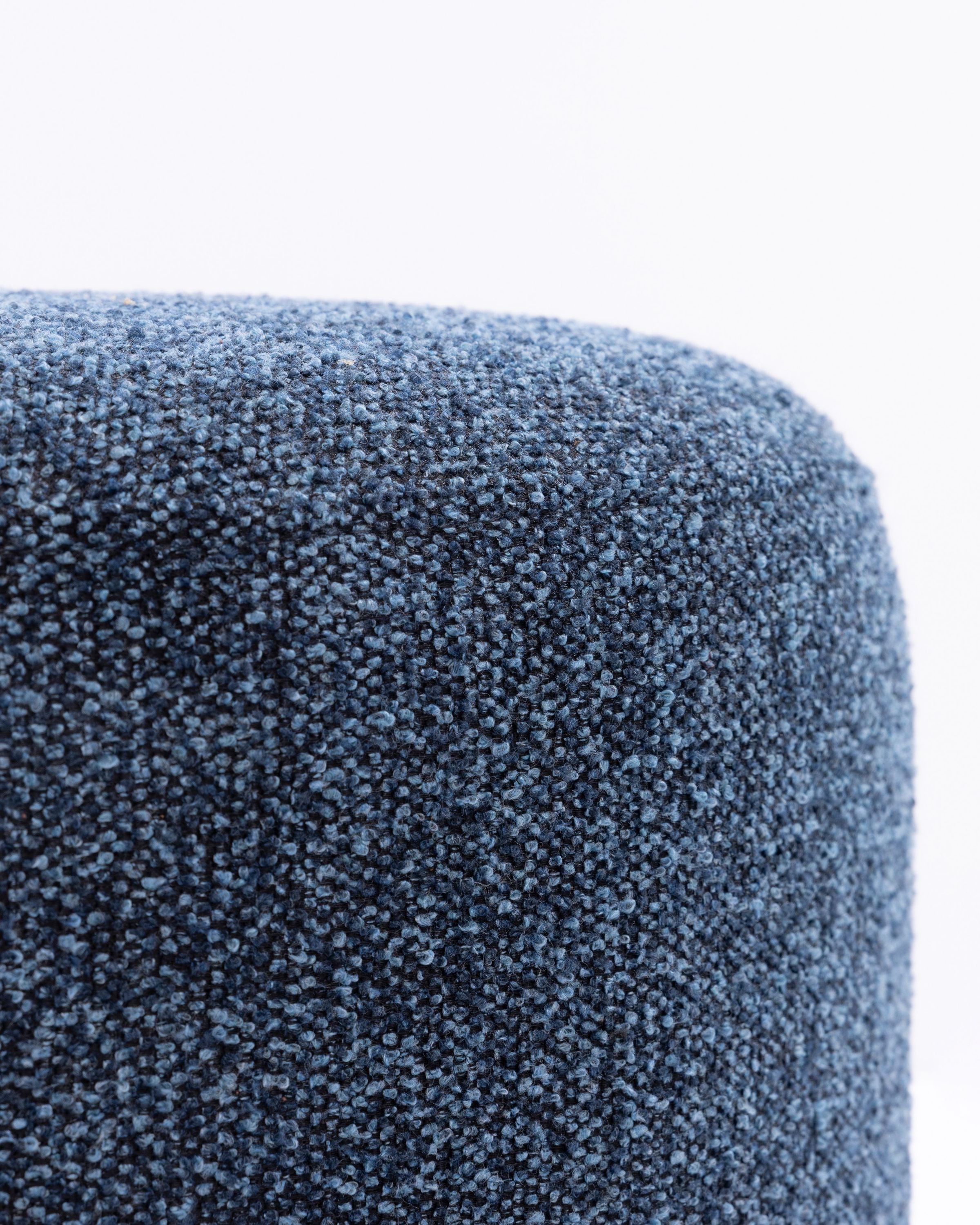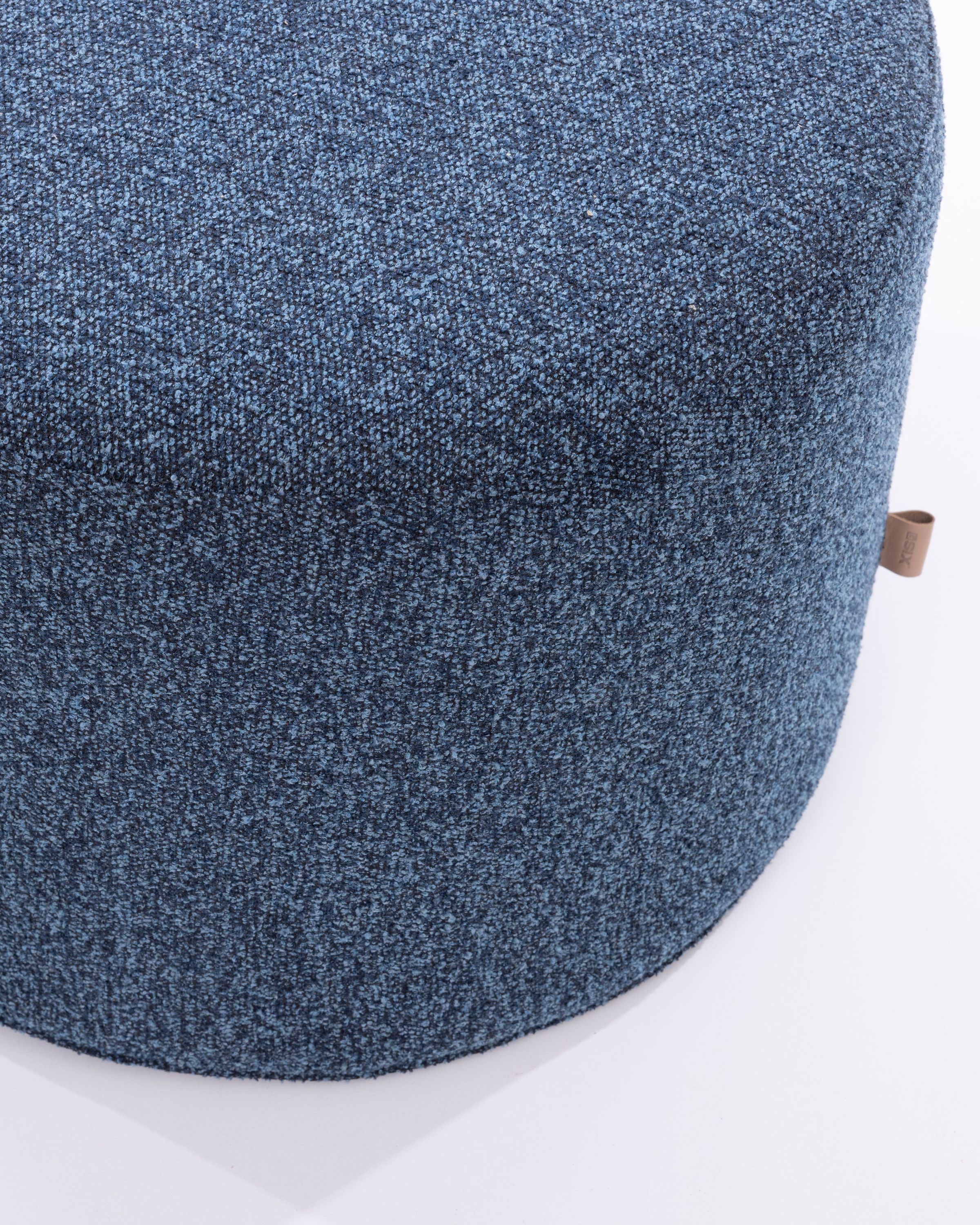 Runder Polsterhocker - Sitzhocker - Fußhocker Webstoff Blau Dieser stabile und wunderschöne Pouf ist mit einem hochwertigen und weichen Stoff bezogen.Sowohl die Farbe als auch der Stoff selbst geben dem Pouf seine besondere Charakteristik.Der innere Holzaufbau ist stabil und langlebig ausgeführt.Als Polsterung verwenden wir einen hochwertigen Polsterschaum, welcher den Pouf sowohl komfortabler als auch langlebiger macht.