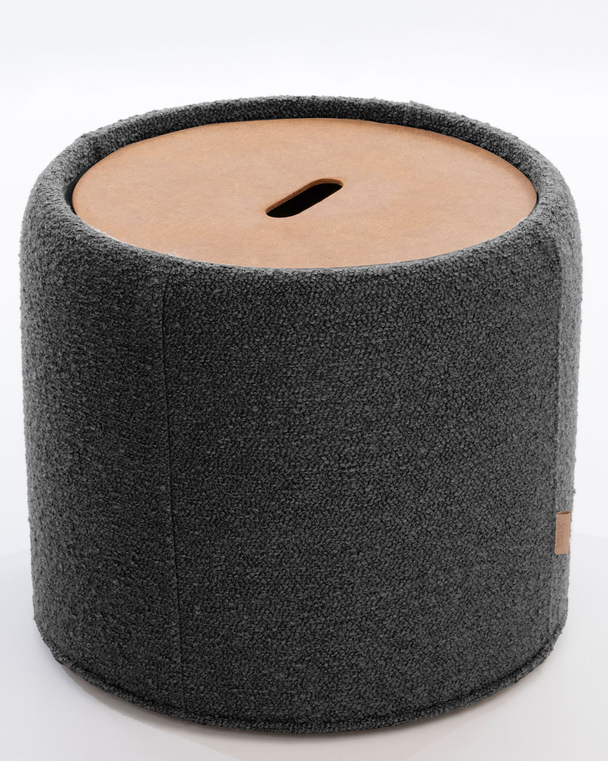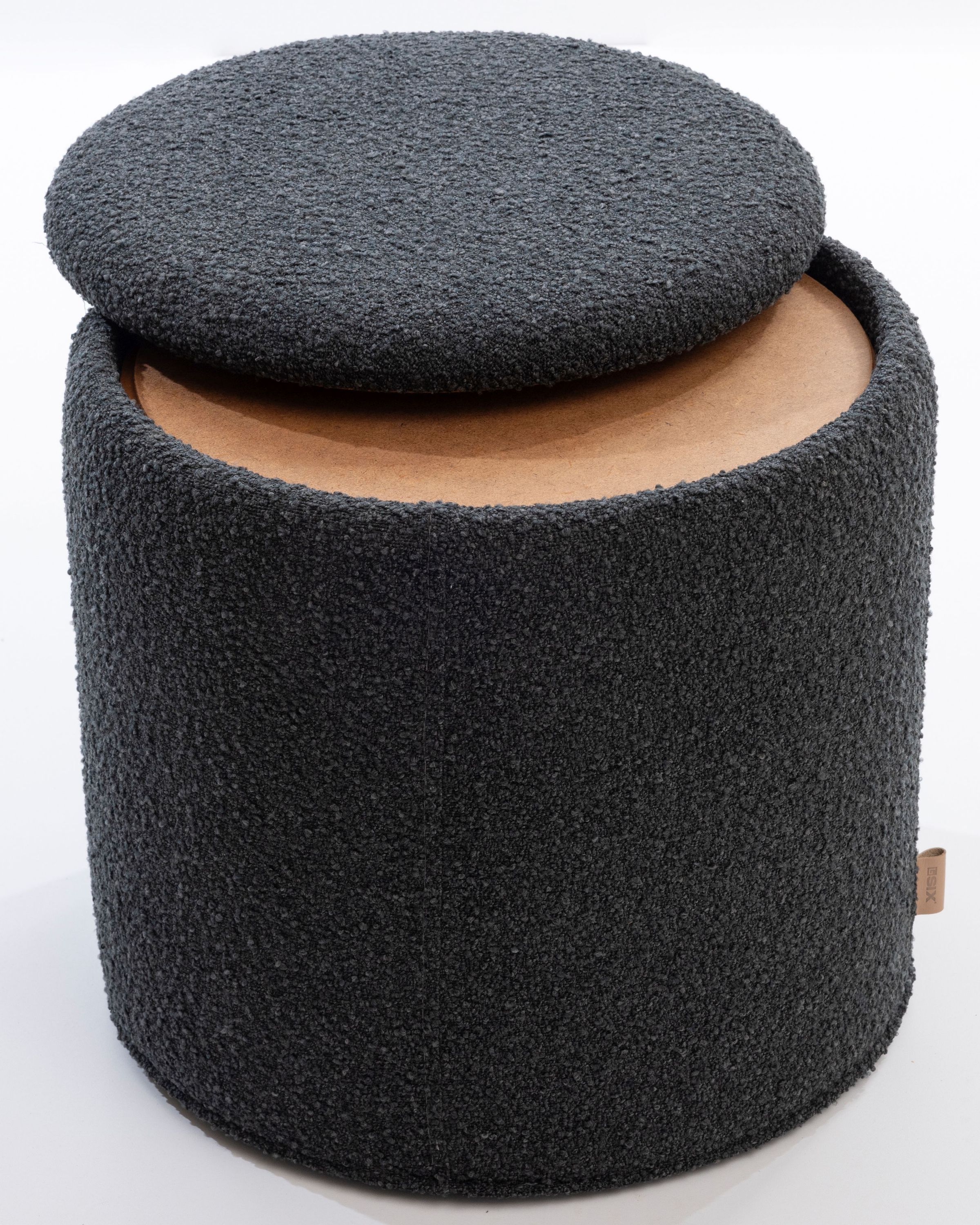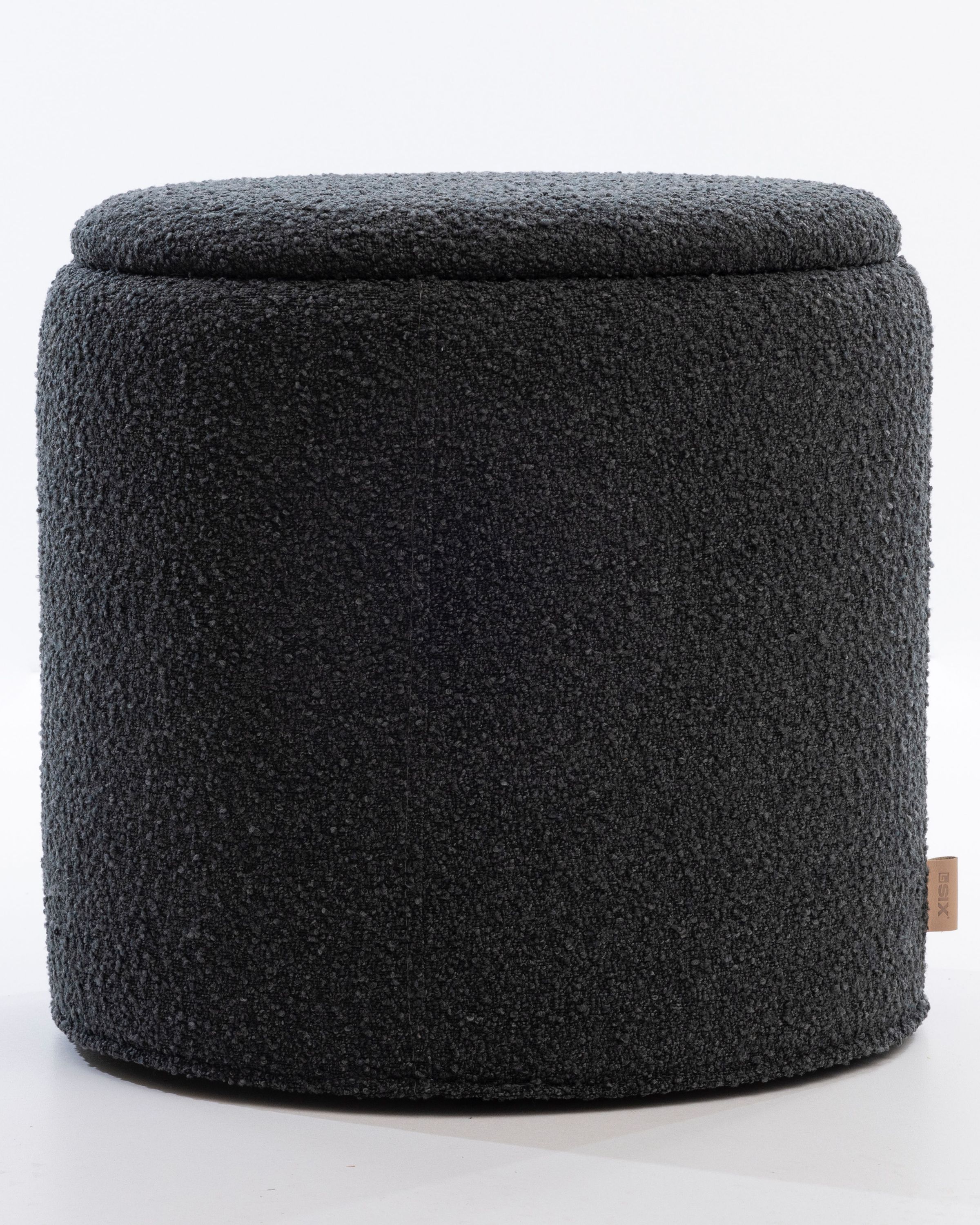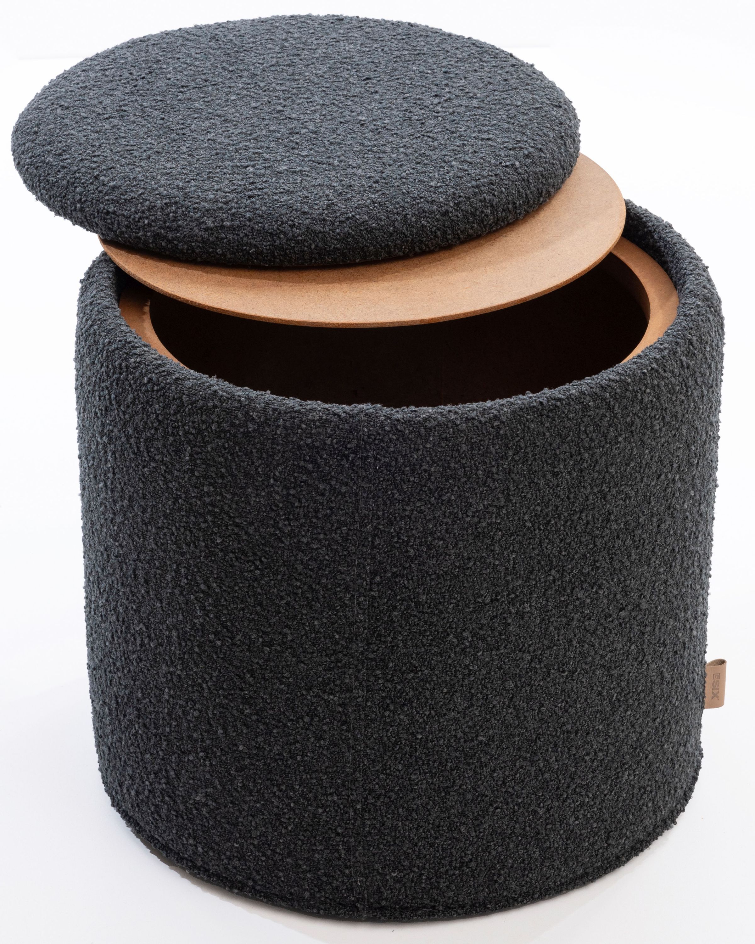 SIX Polsterhocker Fußhocker rund 440x440x450 mm Bouclé Stoff Anthrazit