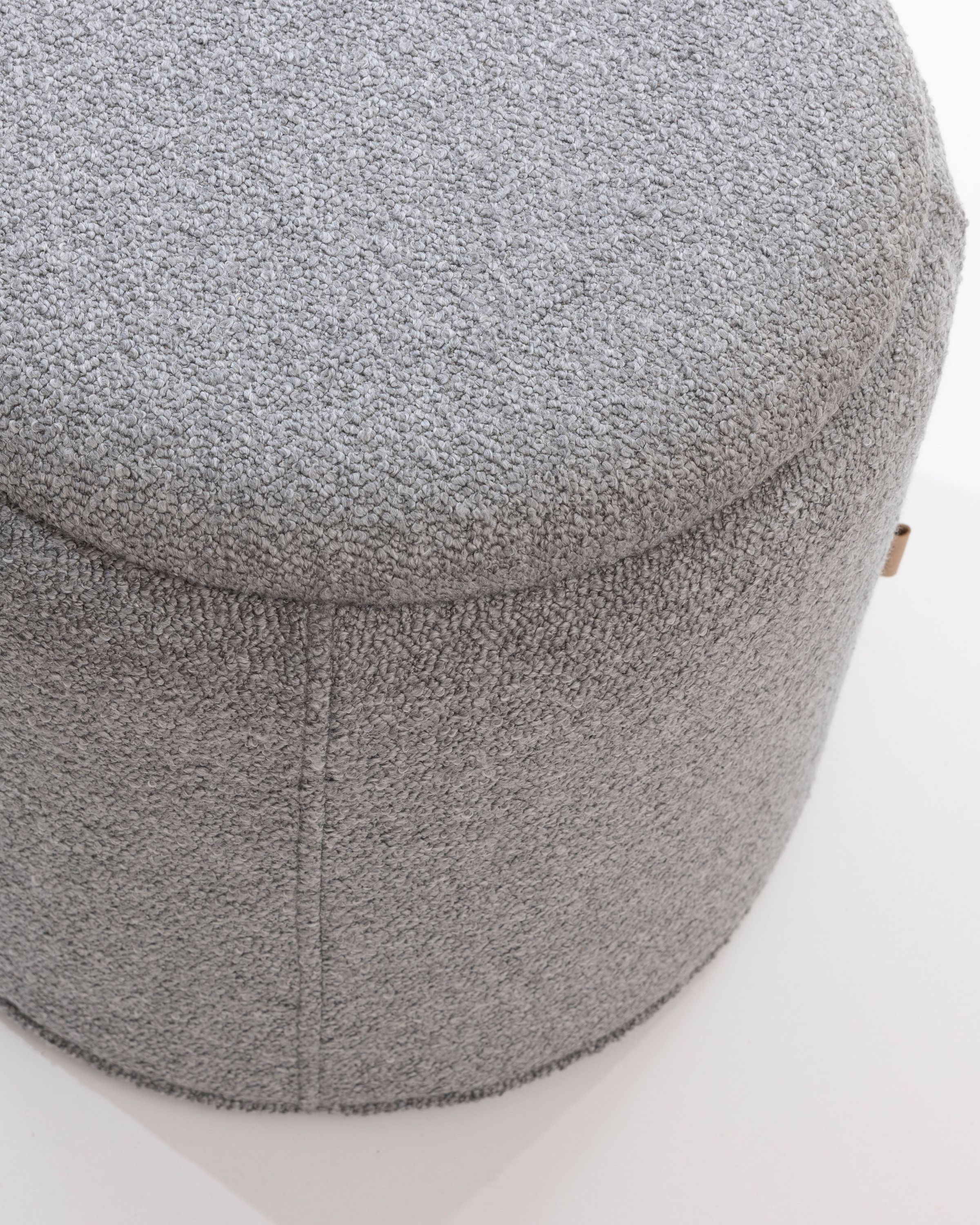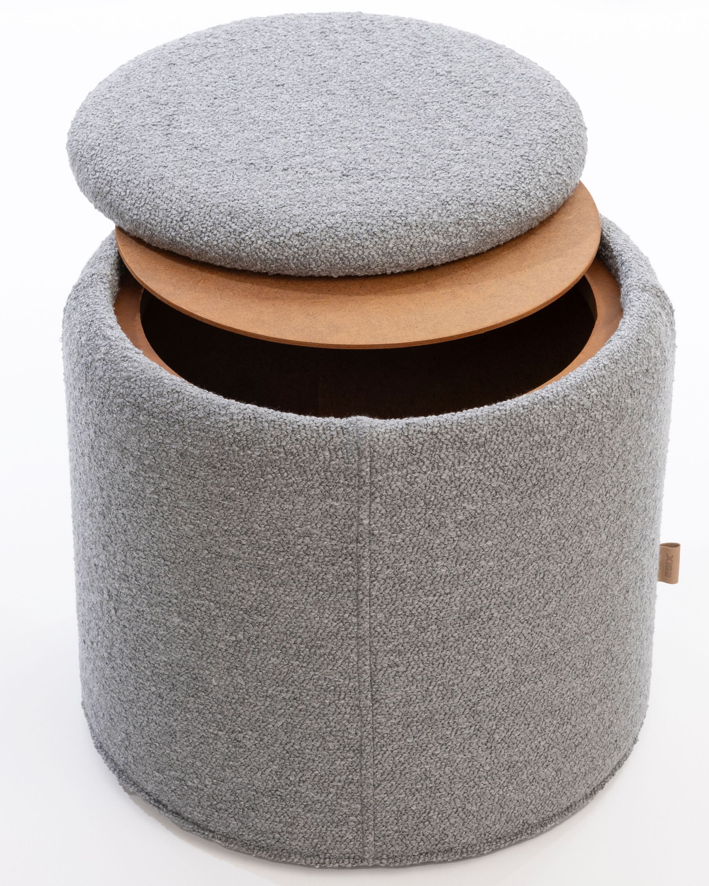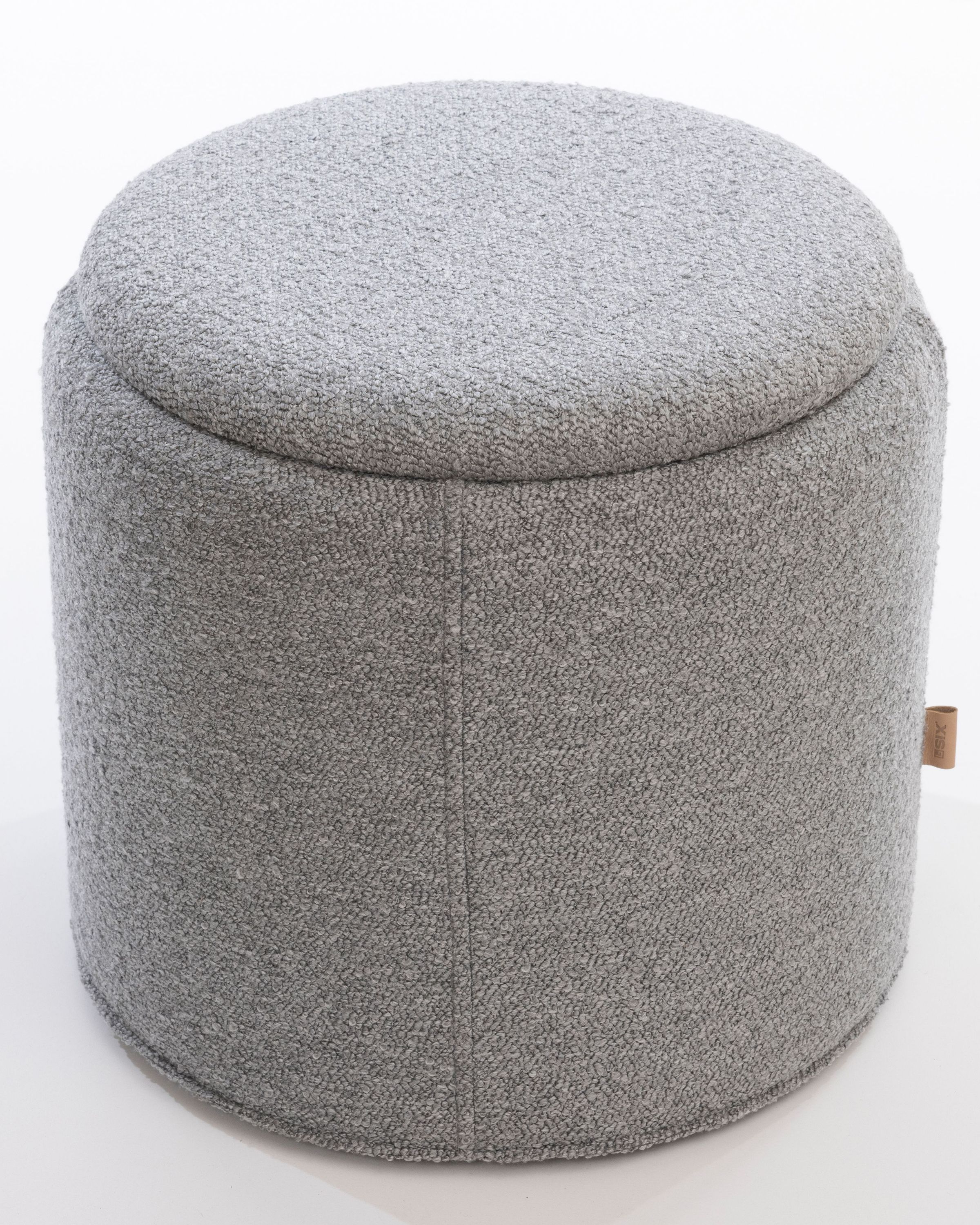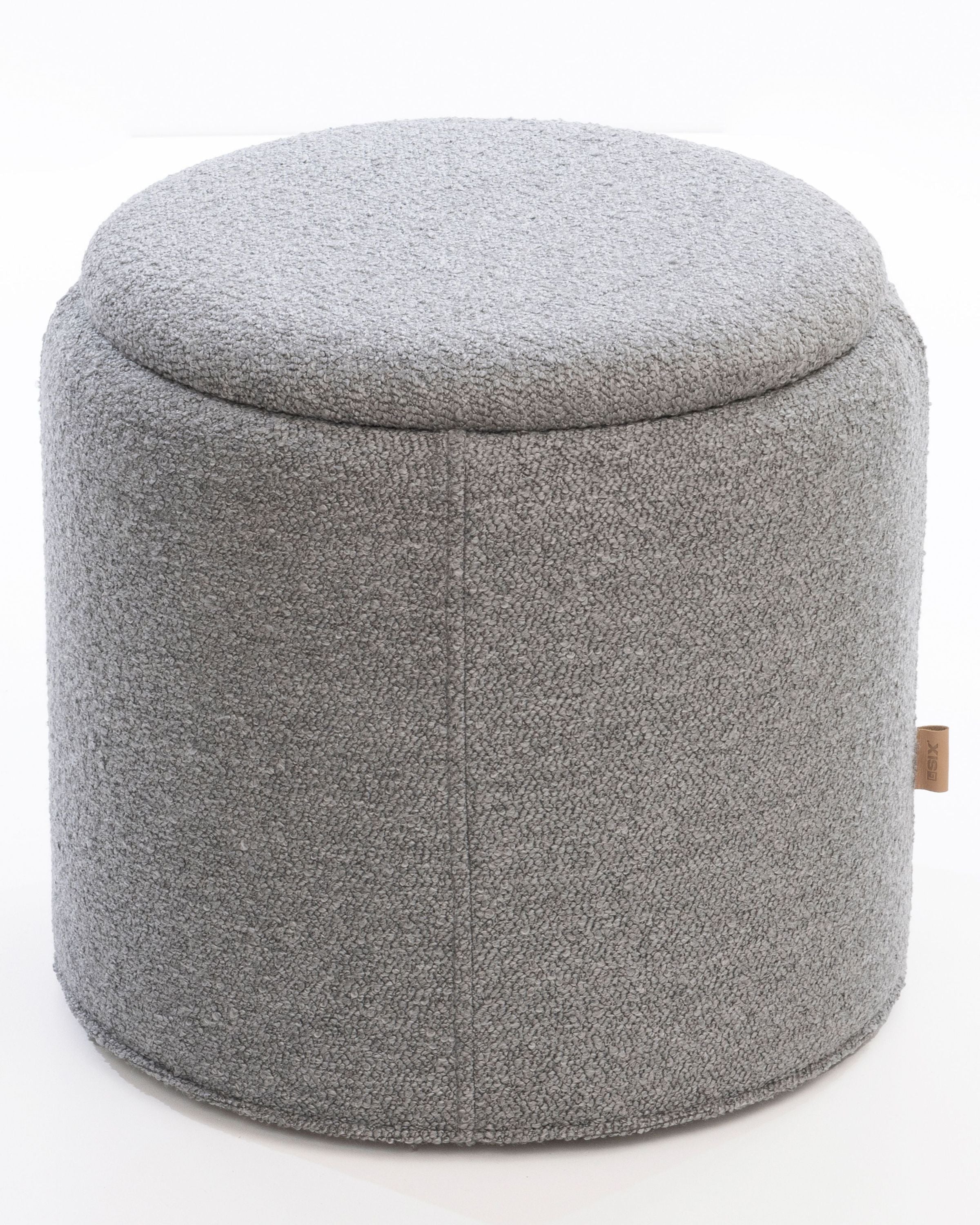 SIX Polsterhocker Fußhocker rund 440x440x450 mm Bouclé Stoff Grau