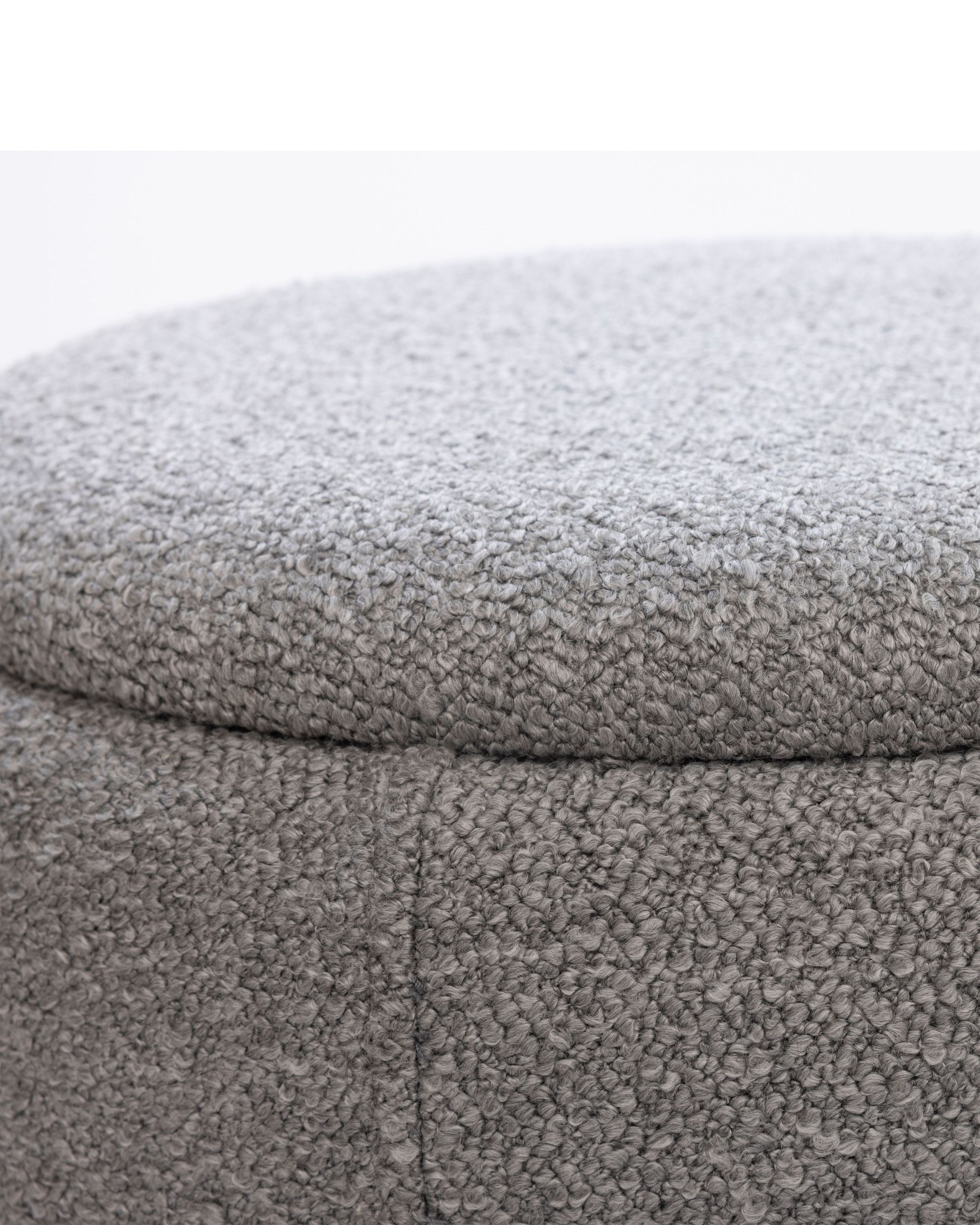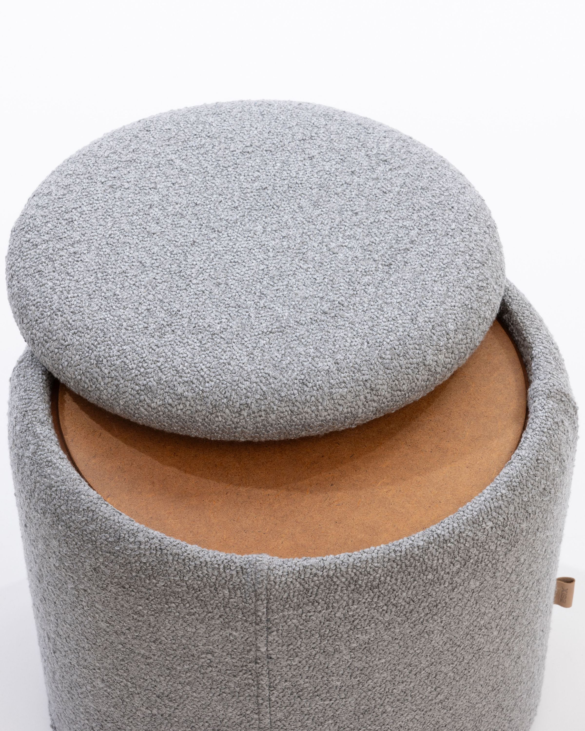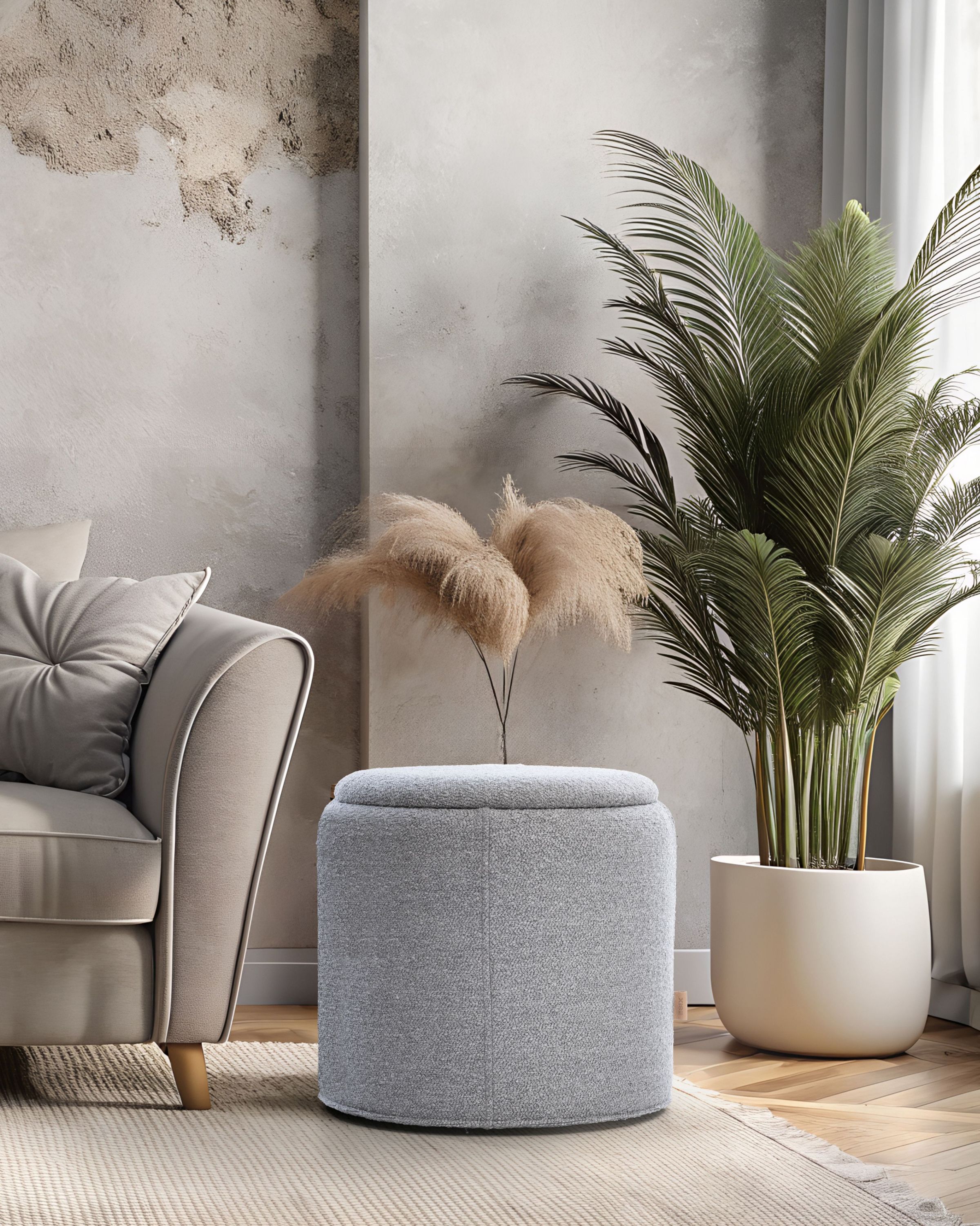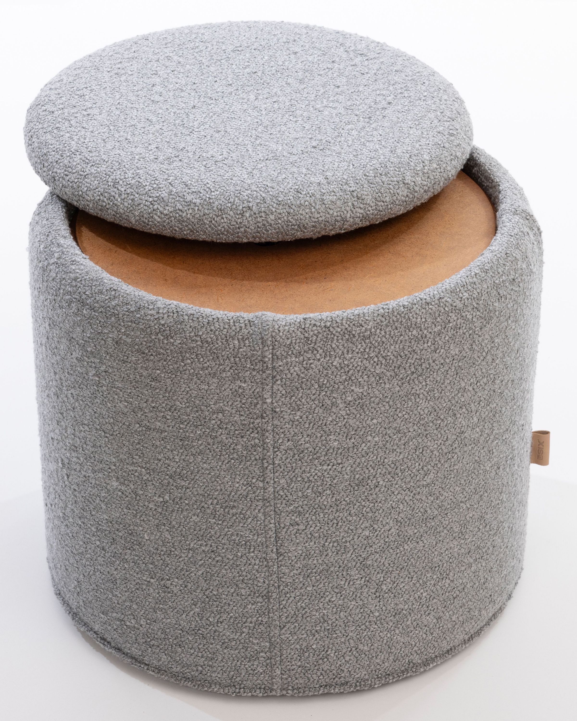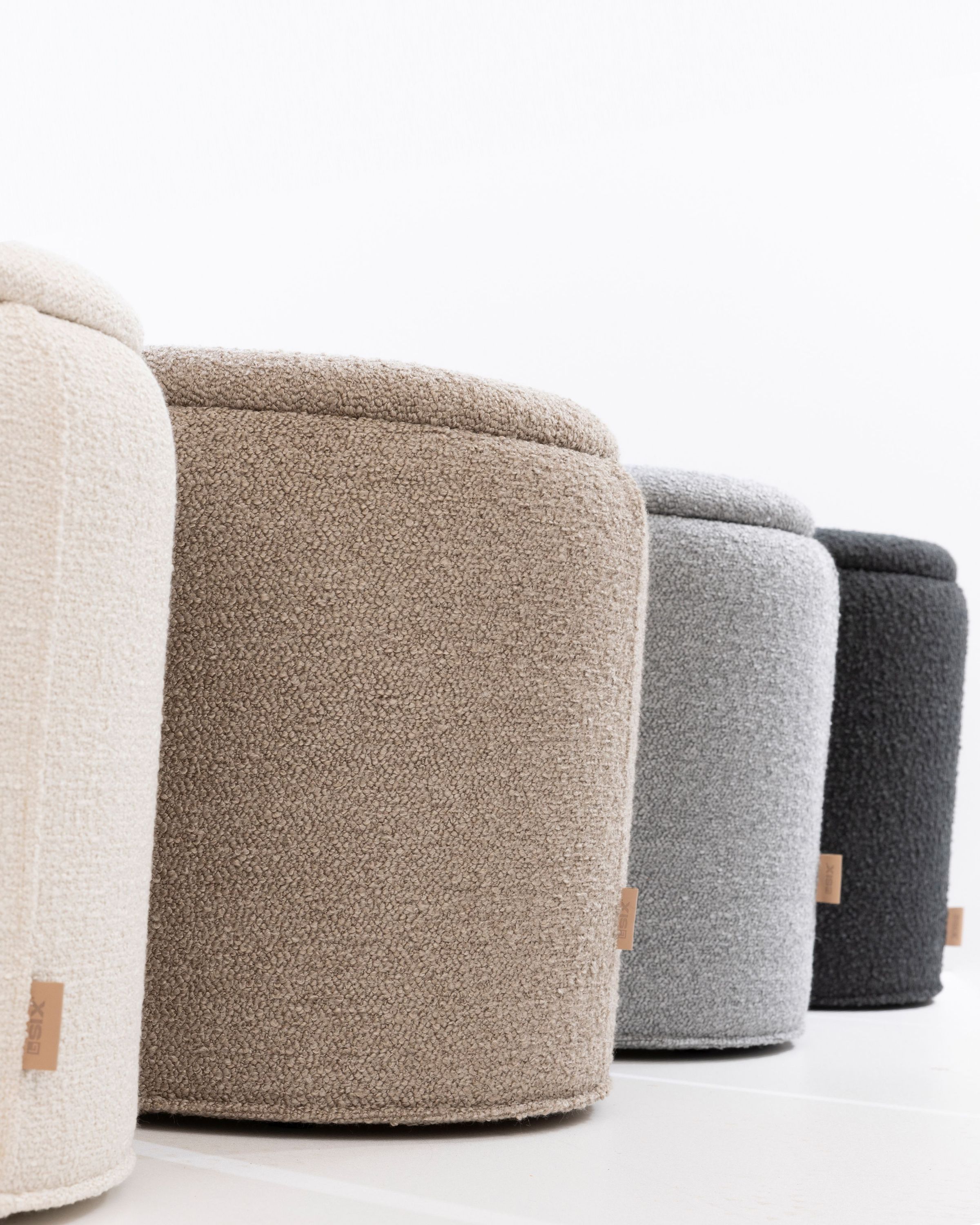 SIX Polsterhocker Fußhocker rund 440x440x450 mm Bouclé Stoff Grau