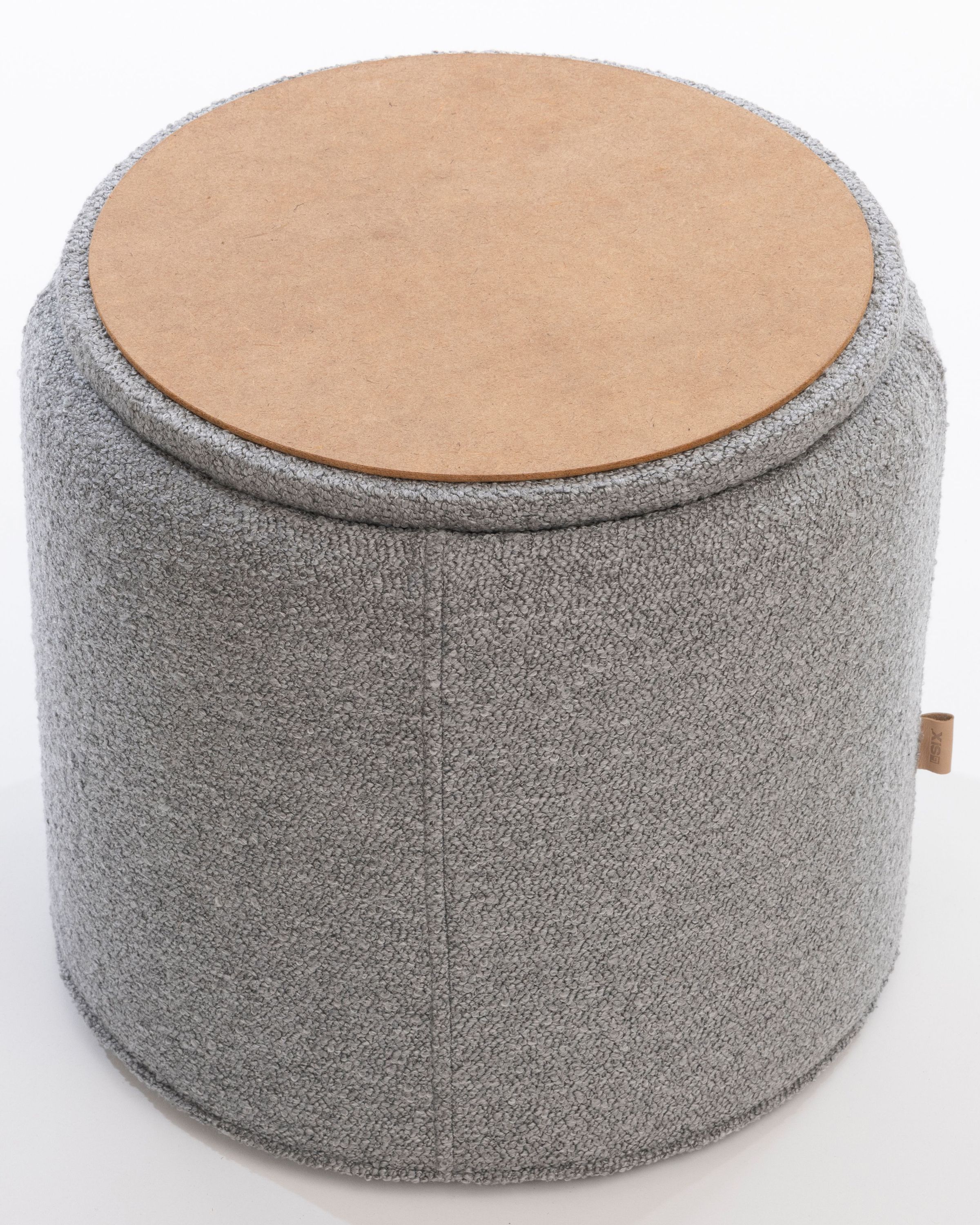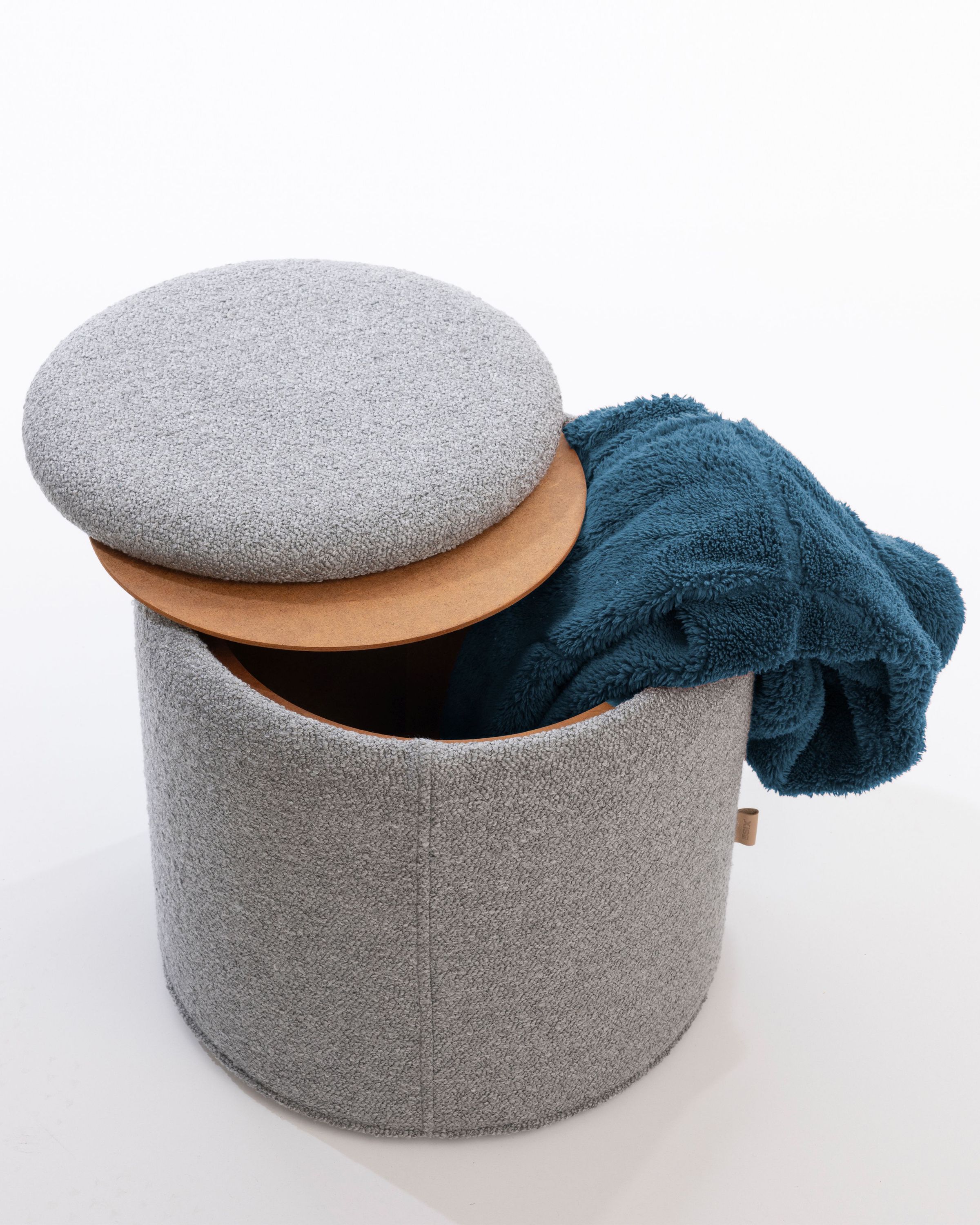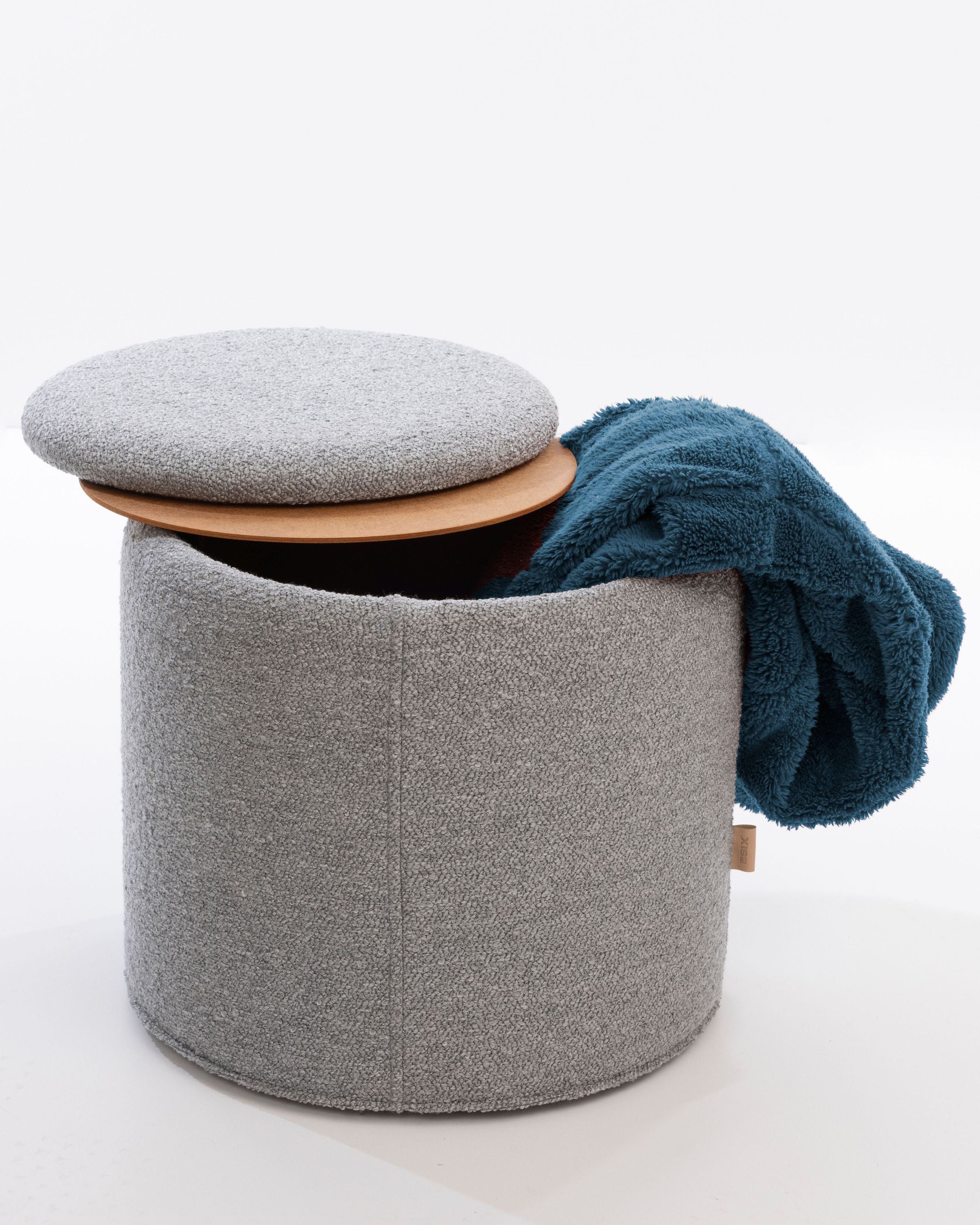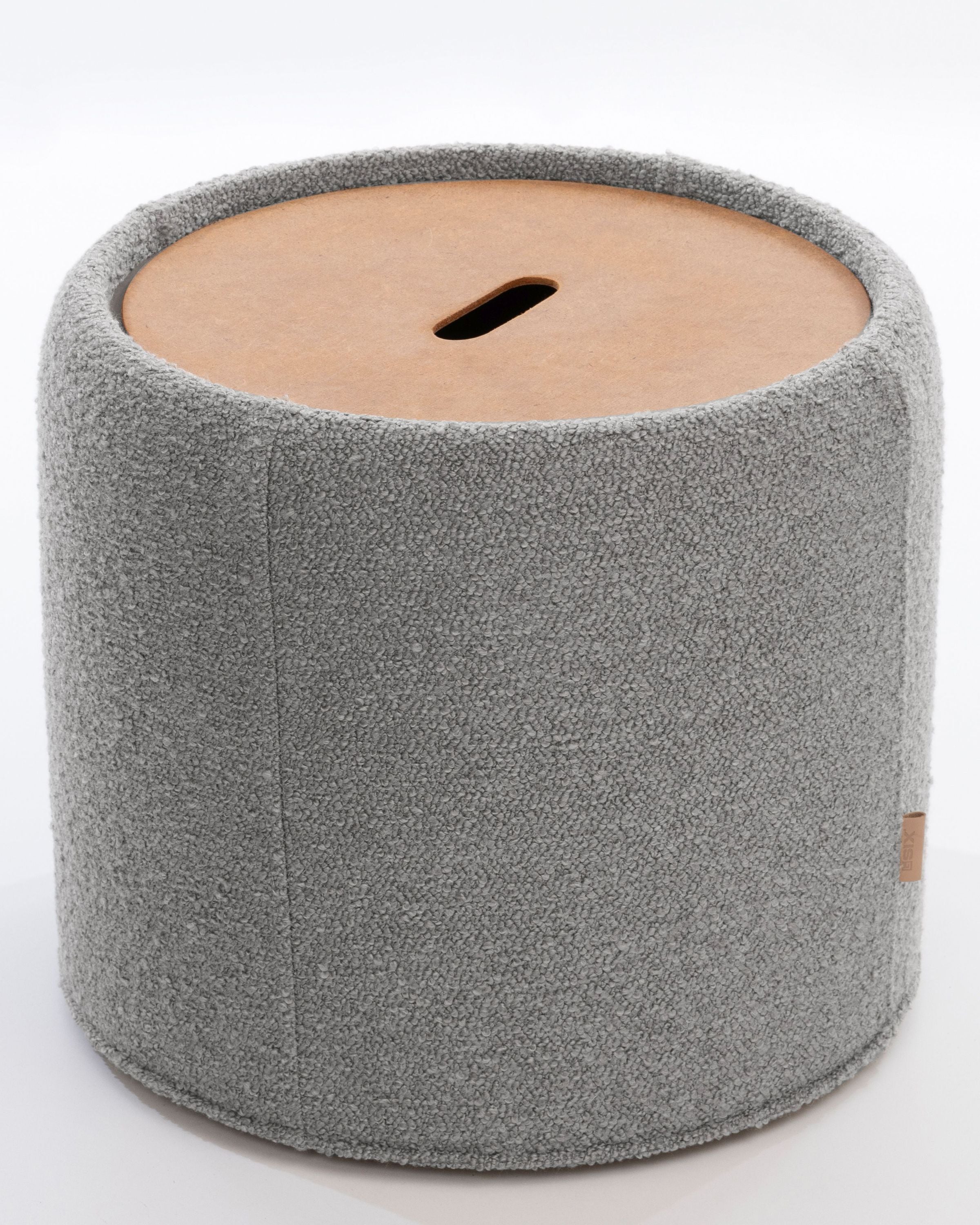 SIX Polsterhocker Fußhocker rund 440x440x450 mm Bouclé Stoff Grau