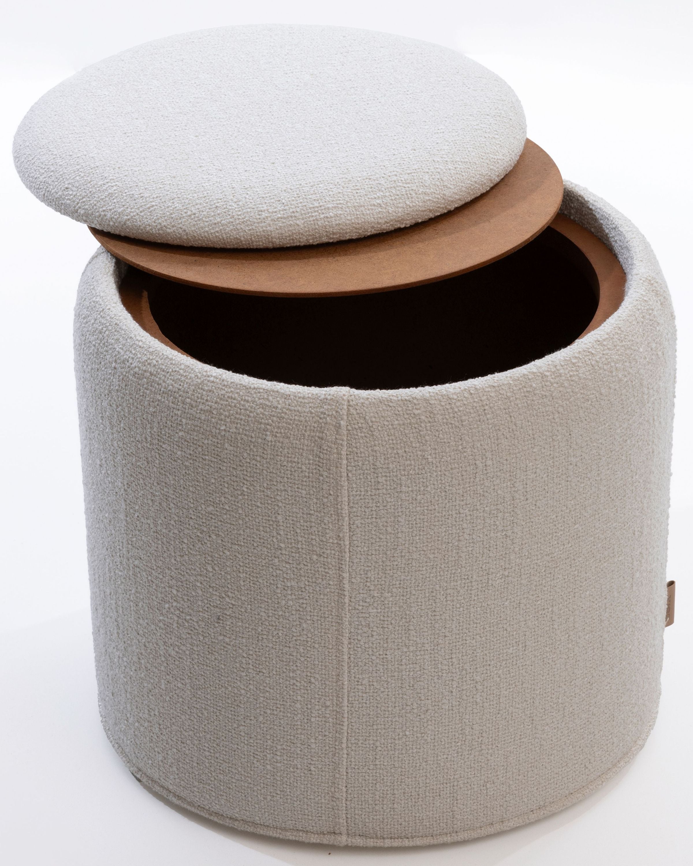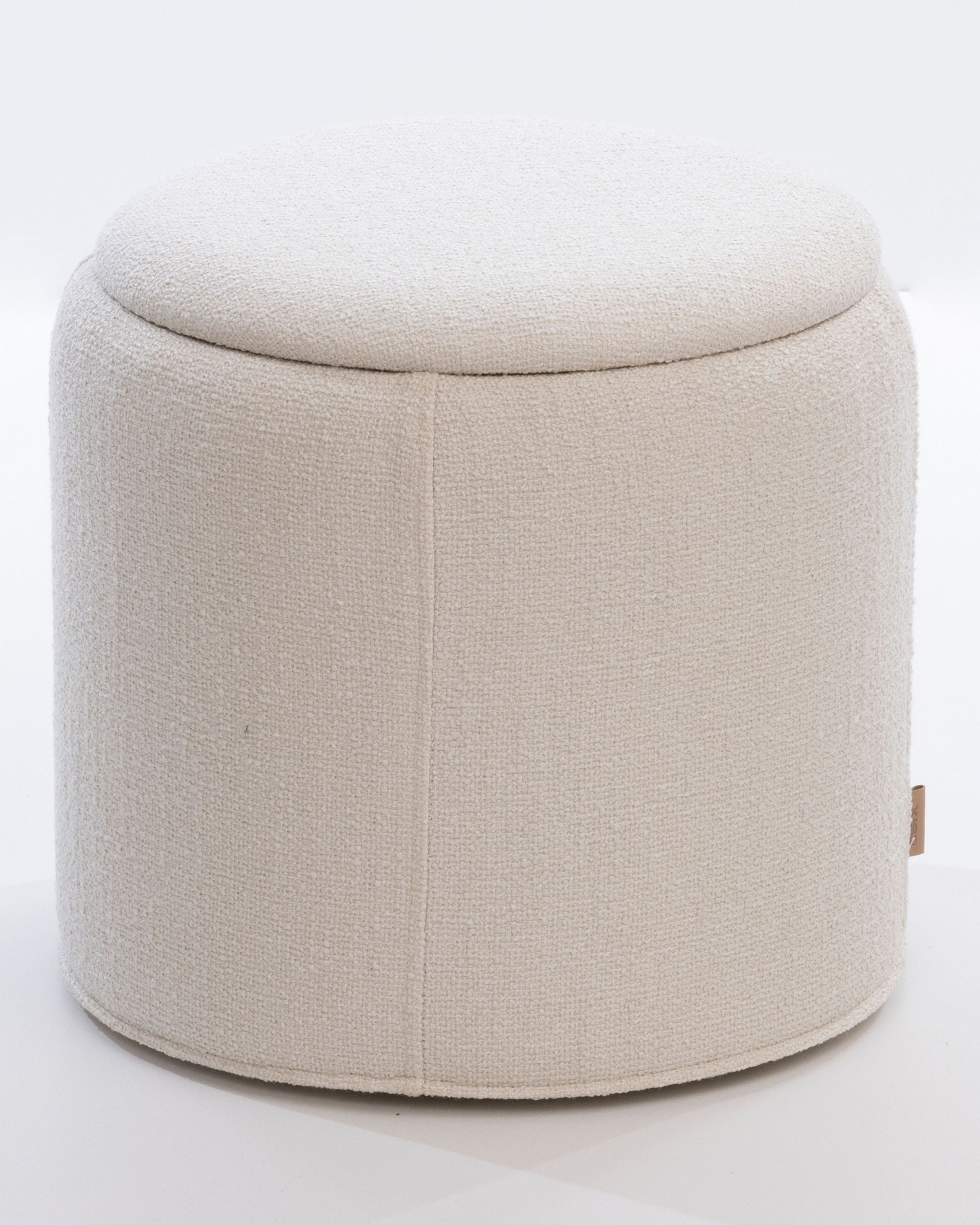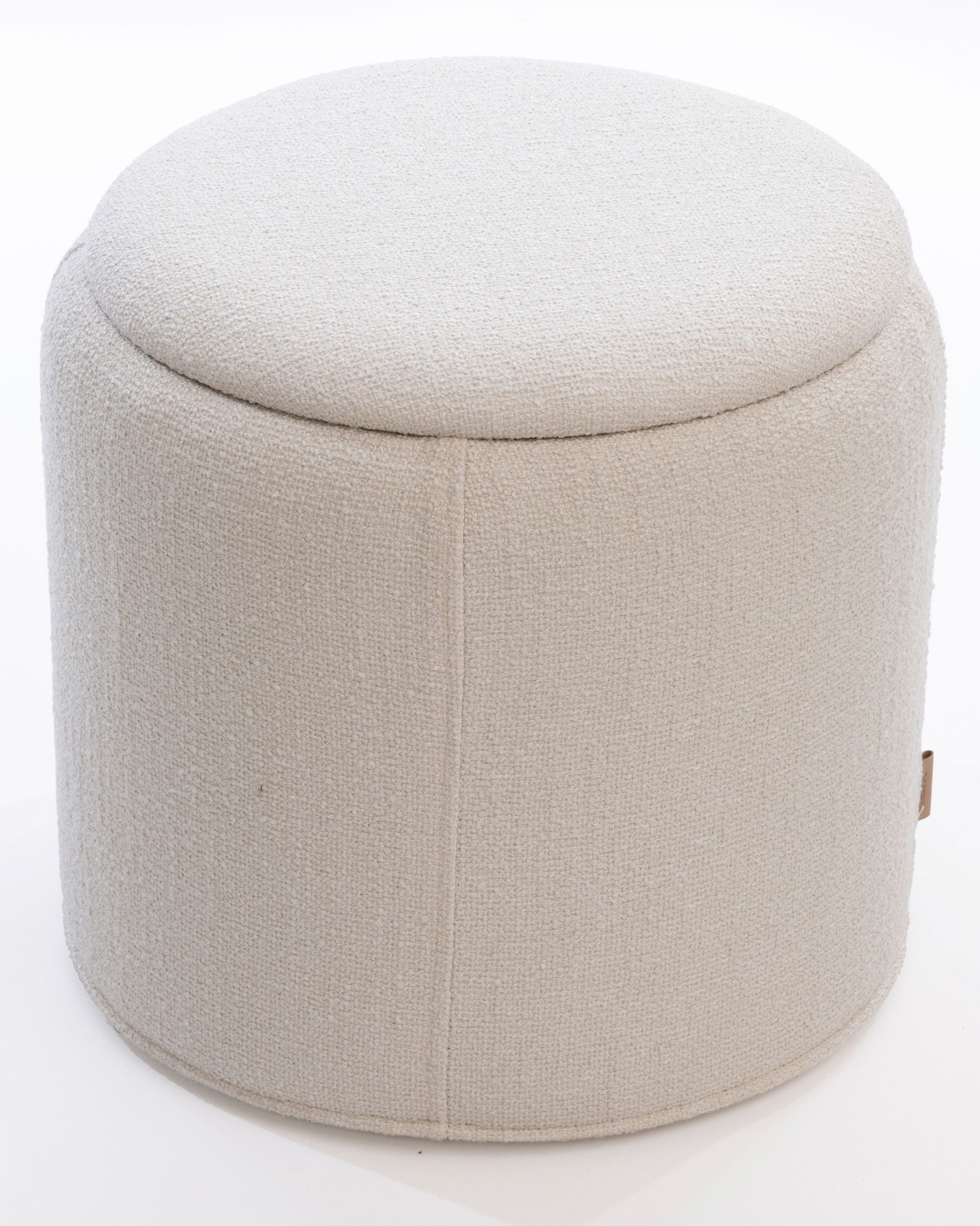 SIX Polsterhocker Fußhocker rund 440x440x450 mm Bouclé Stoff Weiss