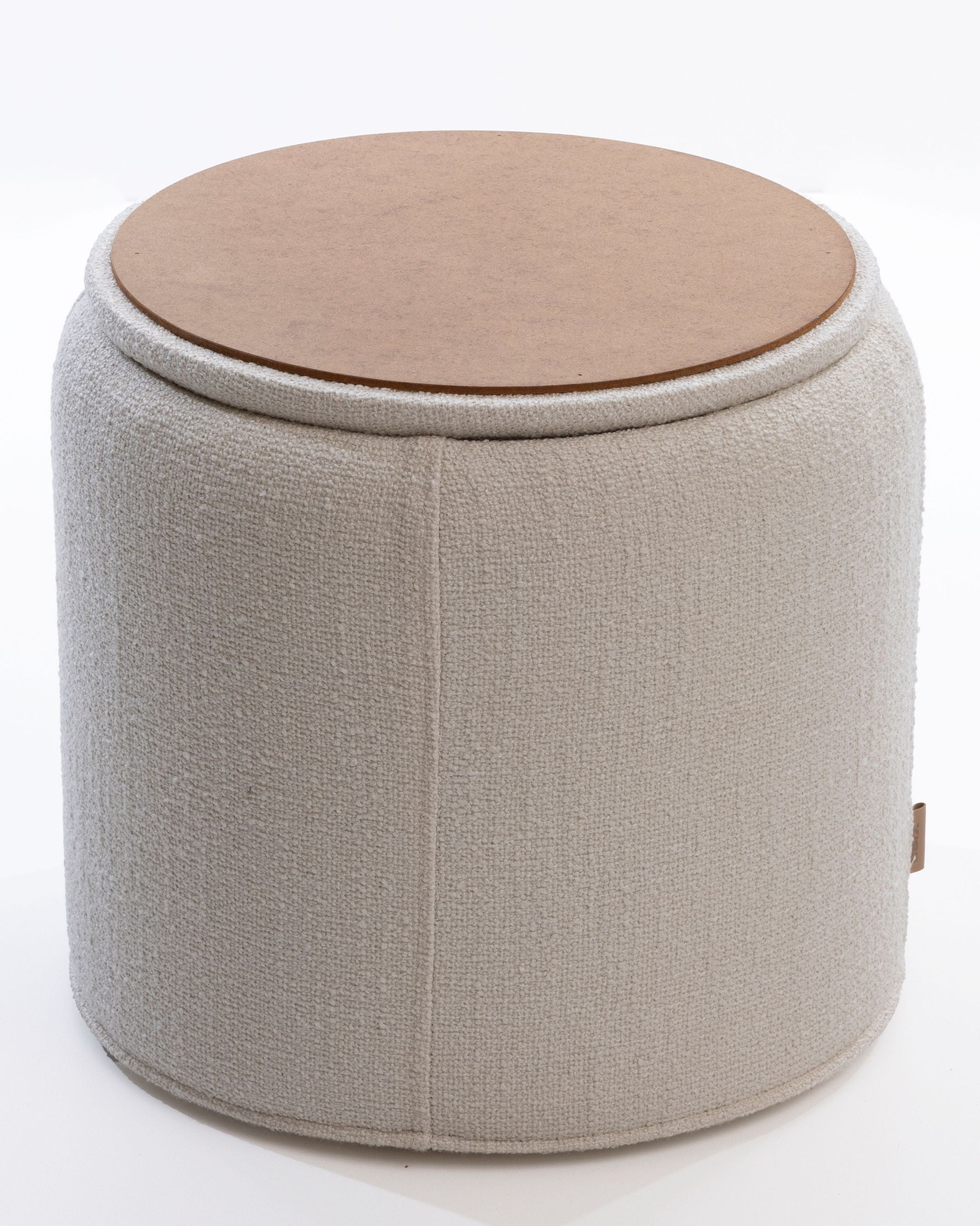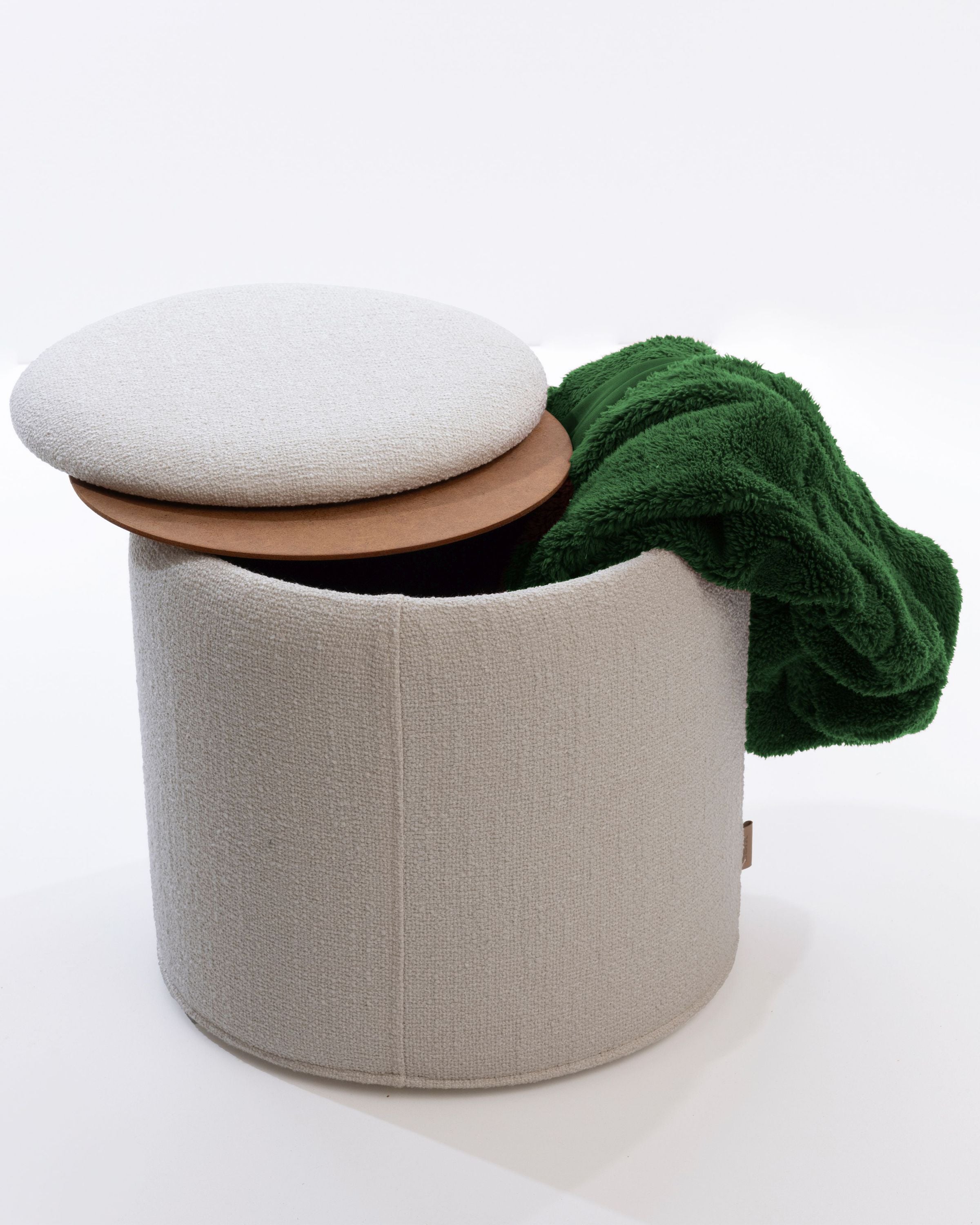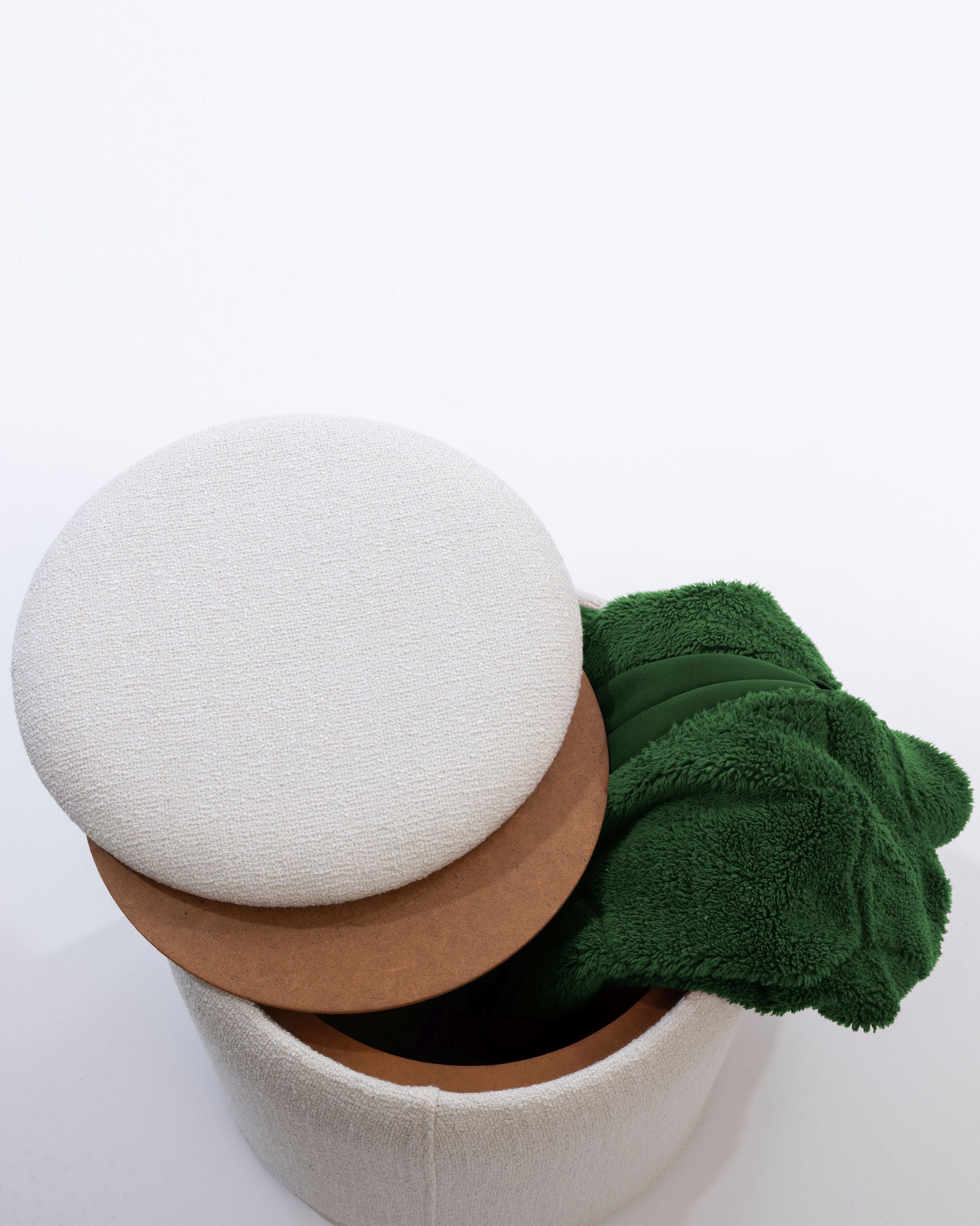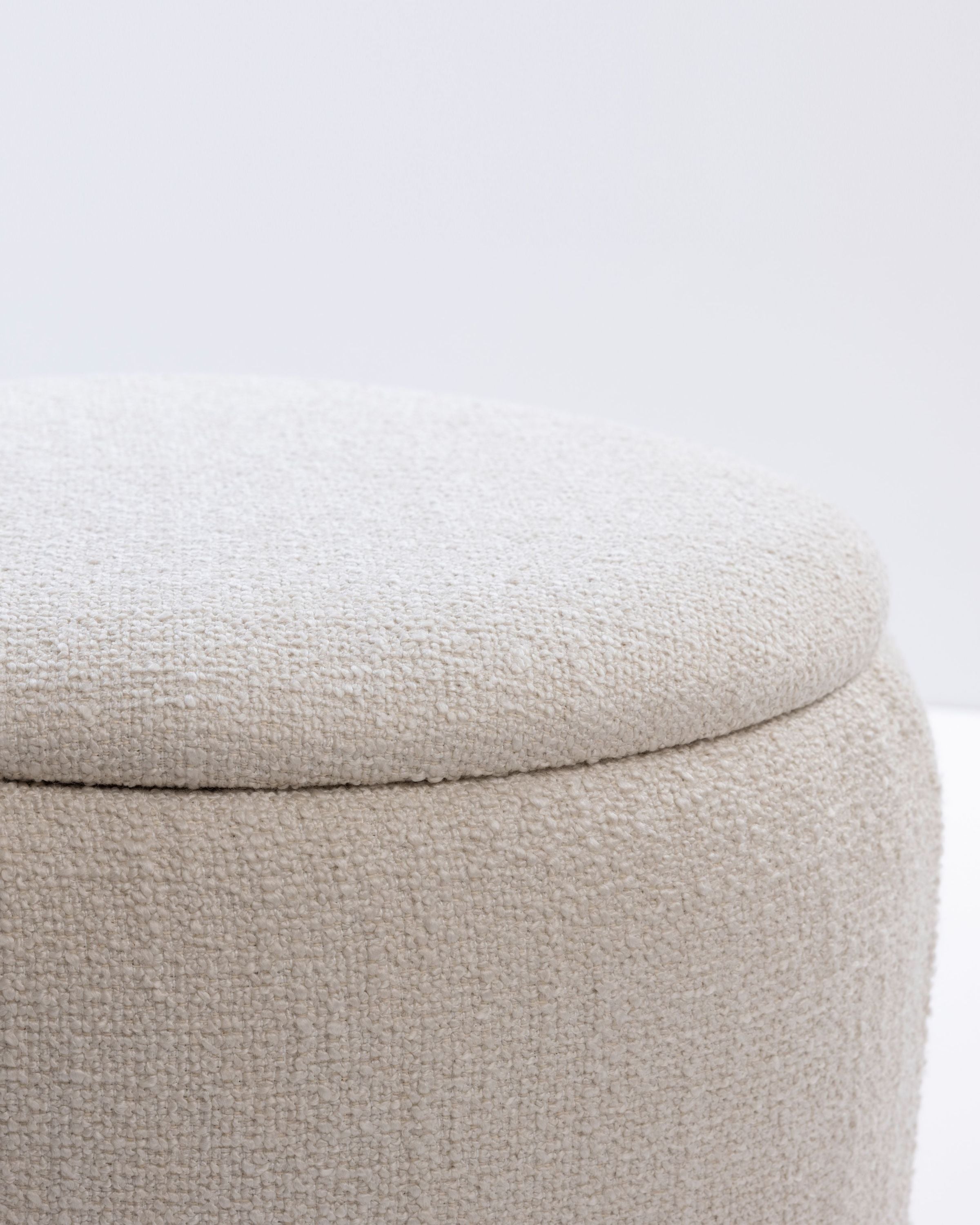 SIX Polsterhocker Fußhocker rund 440x440x450 mm Bouclé Stoff Weiss