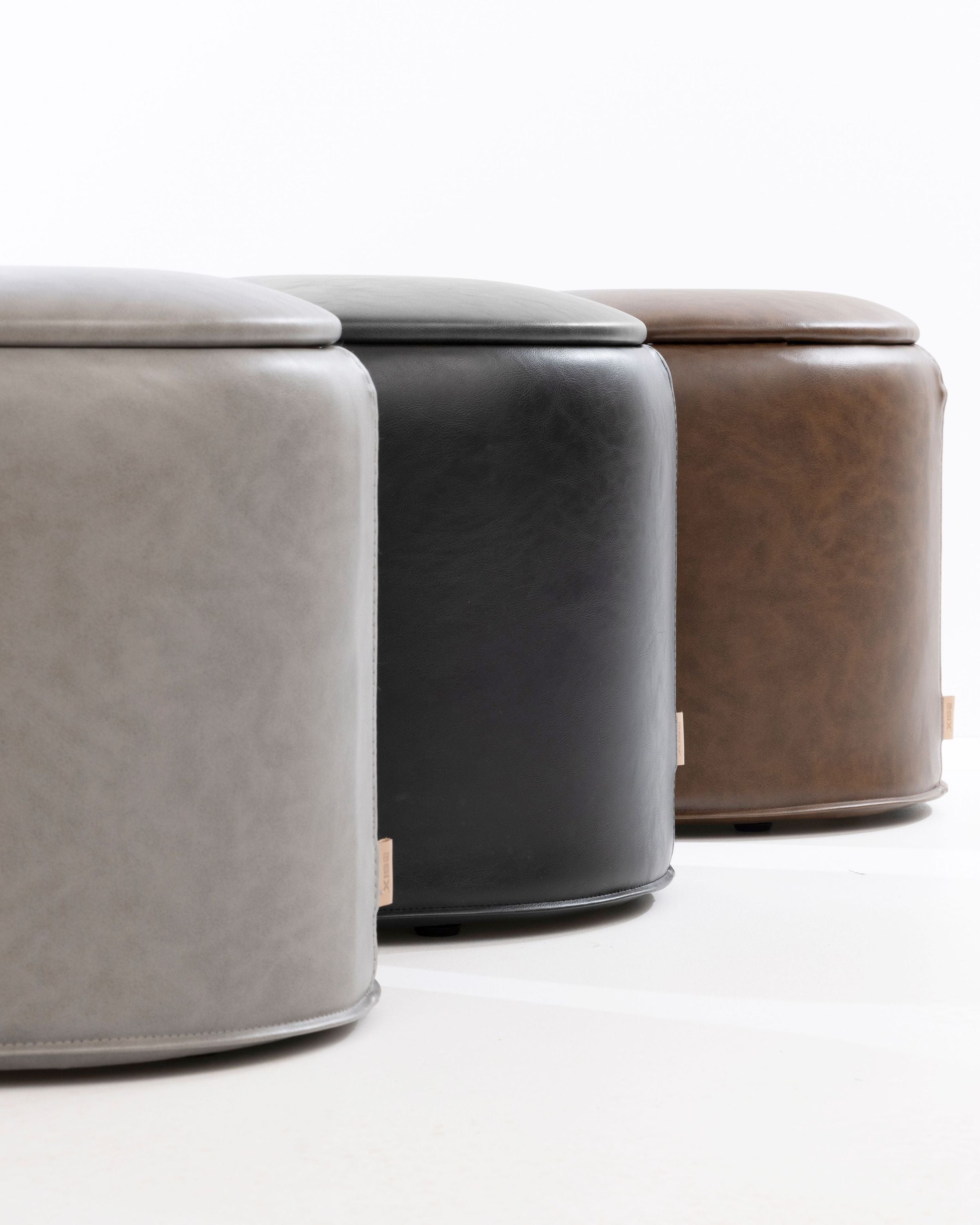 SIX Polsterhocker Fußhocker rund 440x440x450 mm Kunstleder braun