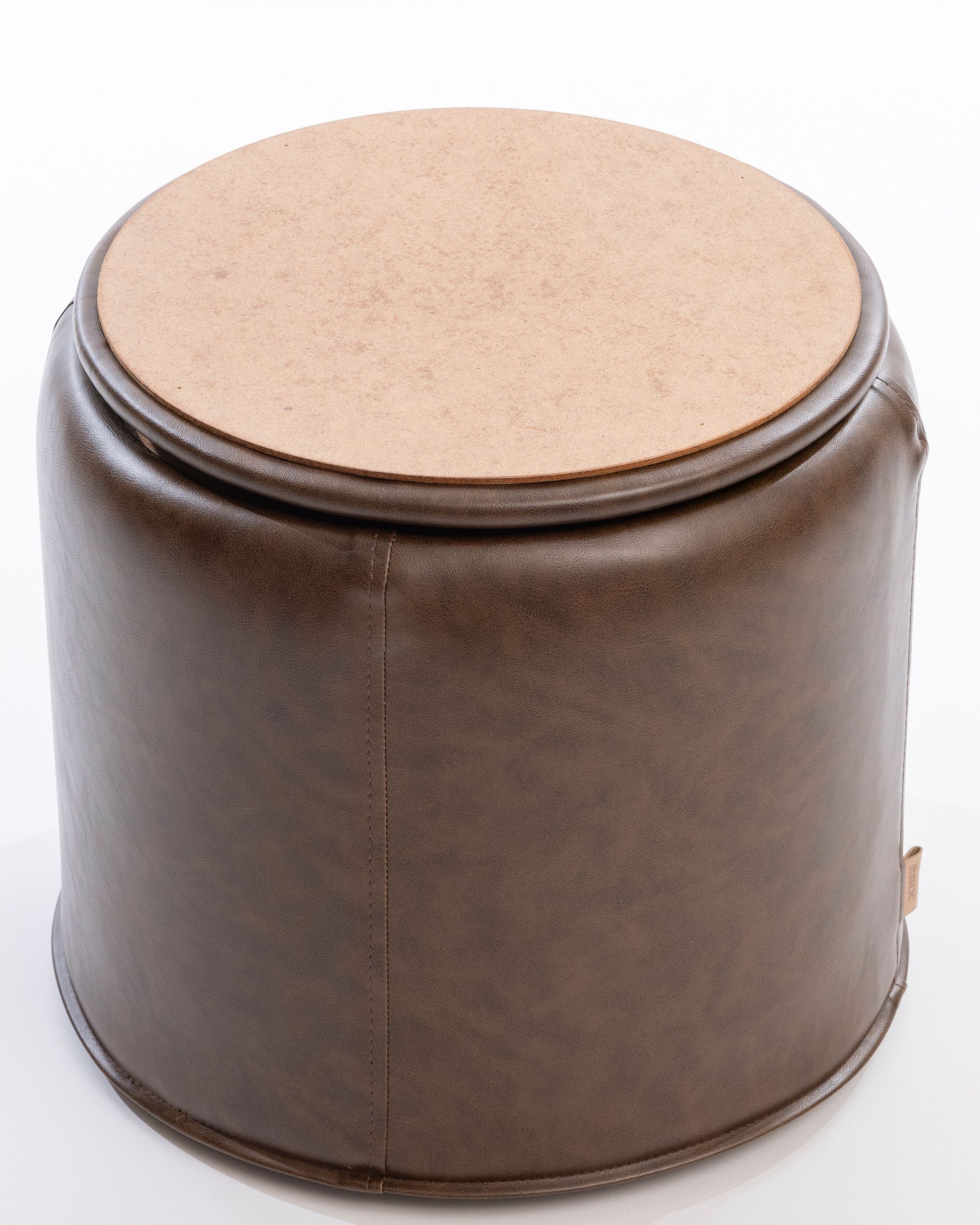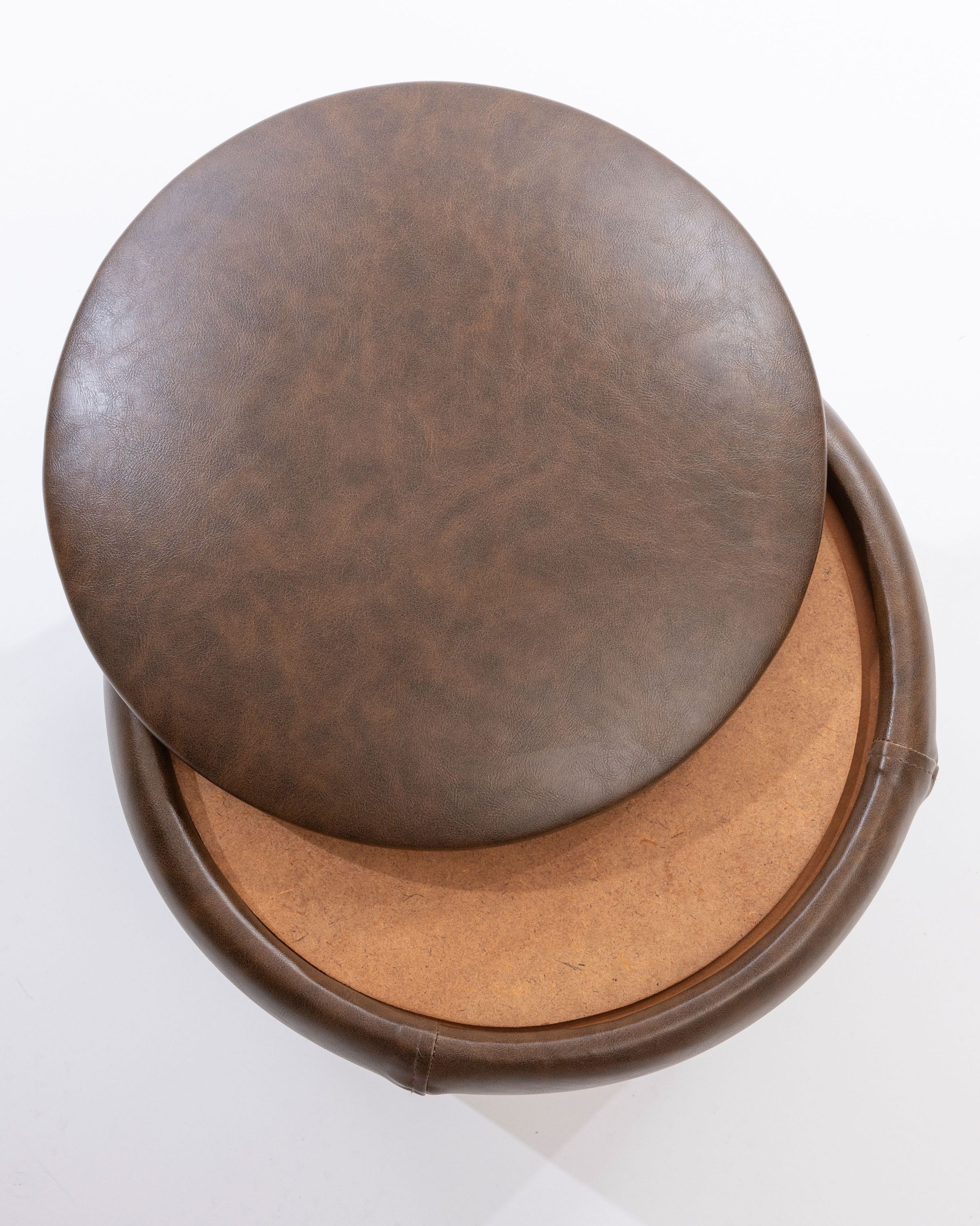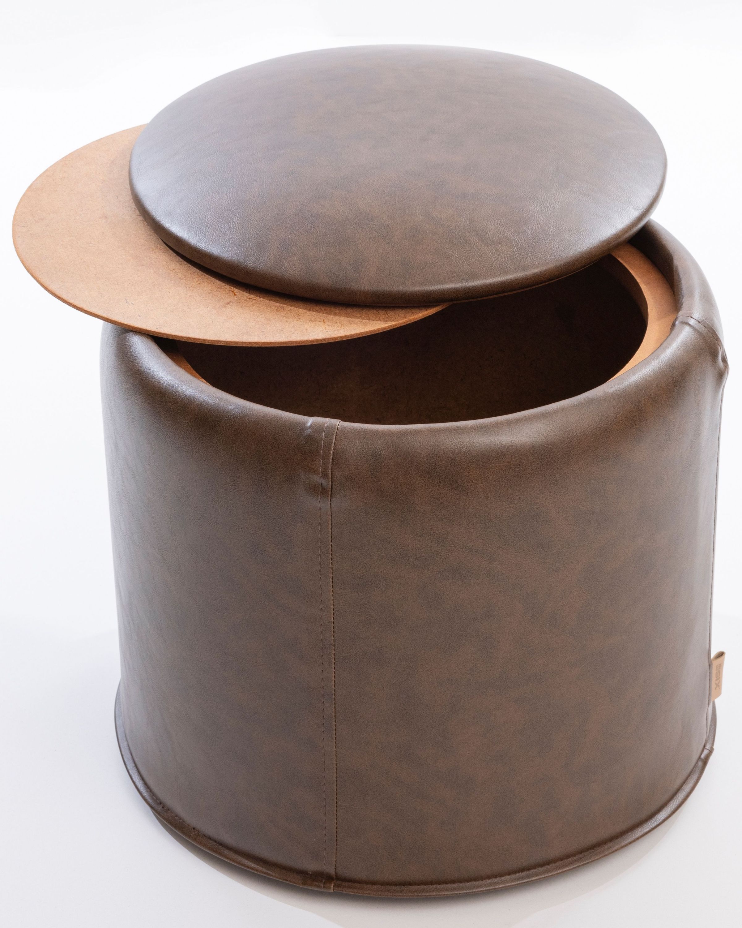 Runder Polsterhocker mit Stauraum und Tablettfunktion – Sitzhocker – Fußhocker Kunstleder Braun Dieser vielseitige Polsterhocker aus hochwertigem braunem Kunstleder kombiniert Stil und Funktionalität. Er kann sowohl als Sitzhocker, Fußhocker als auch als Beistelltisch genutzt werden. Der Deckel ist abnehmbar und dient gleichzeitig als Tablett, wodurch der Hocker noch praktischer wird. Das robuste Kunstleder verleiht dem Hocker einen modernen, eleganten Look, der perfekt in jedes Zuhause passt.
