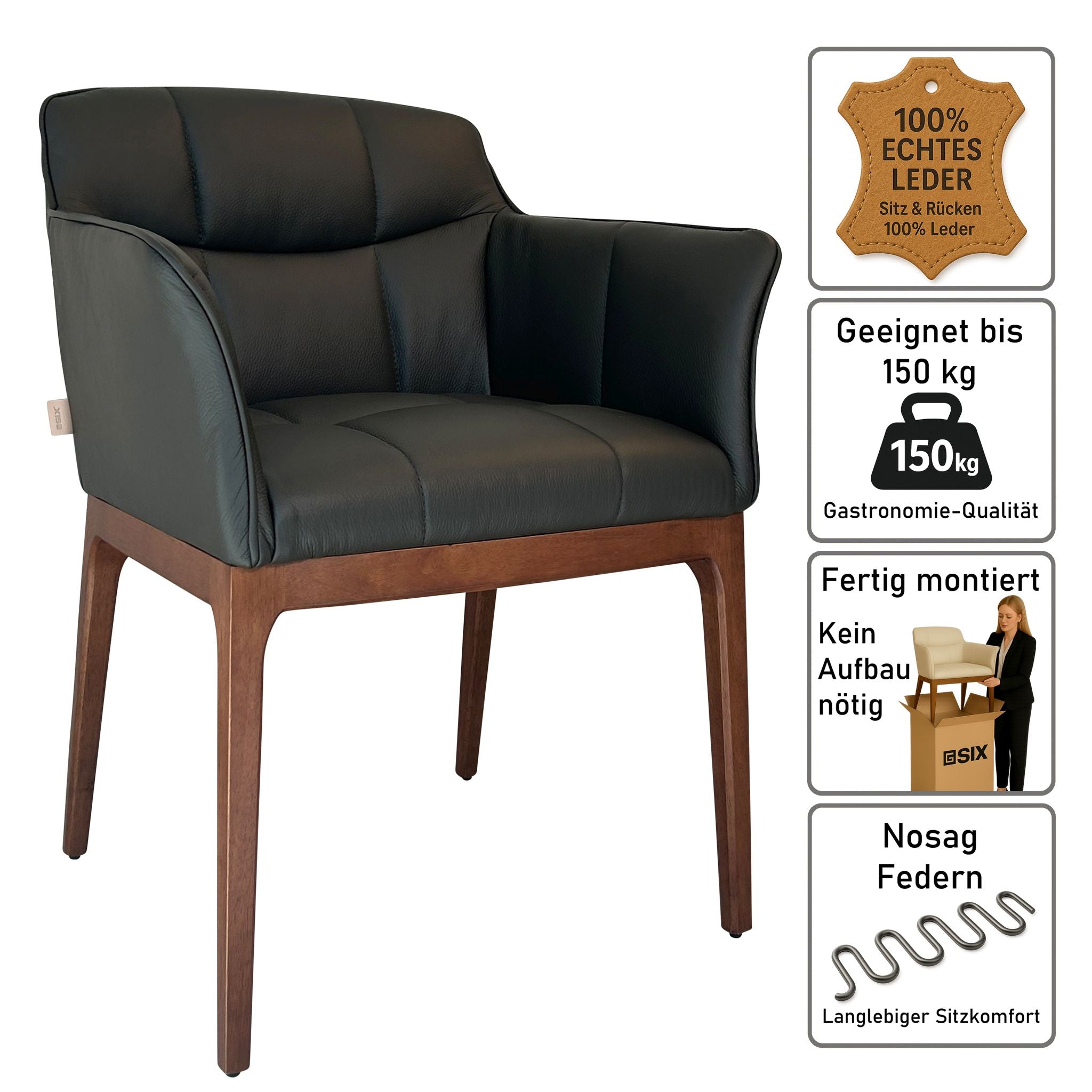 SIX Zeta Echtleder Esszimmerstuhl Armlehnenstuhl – Braun Nussbaum