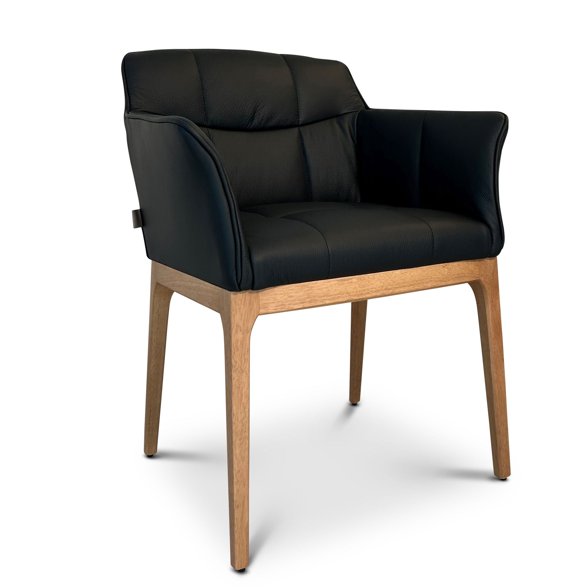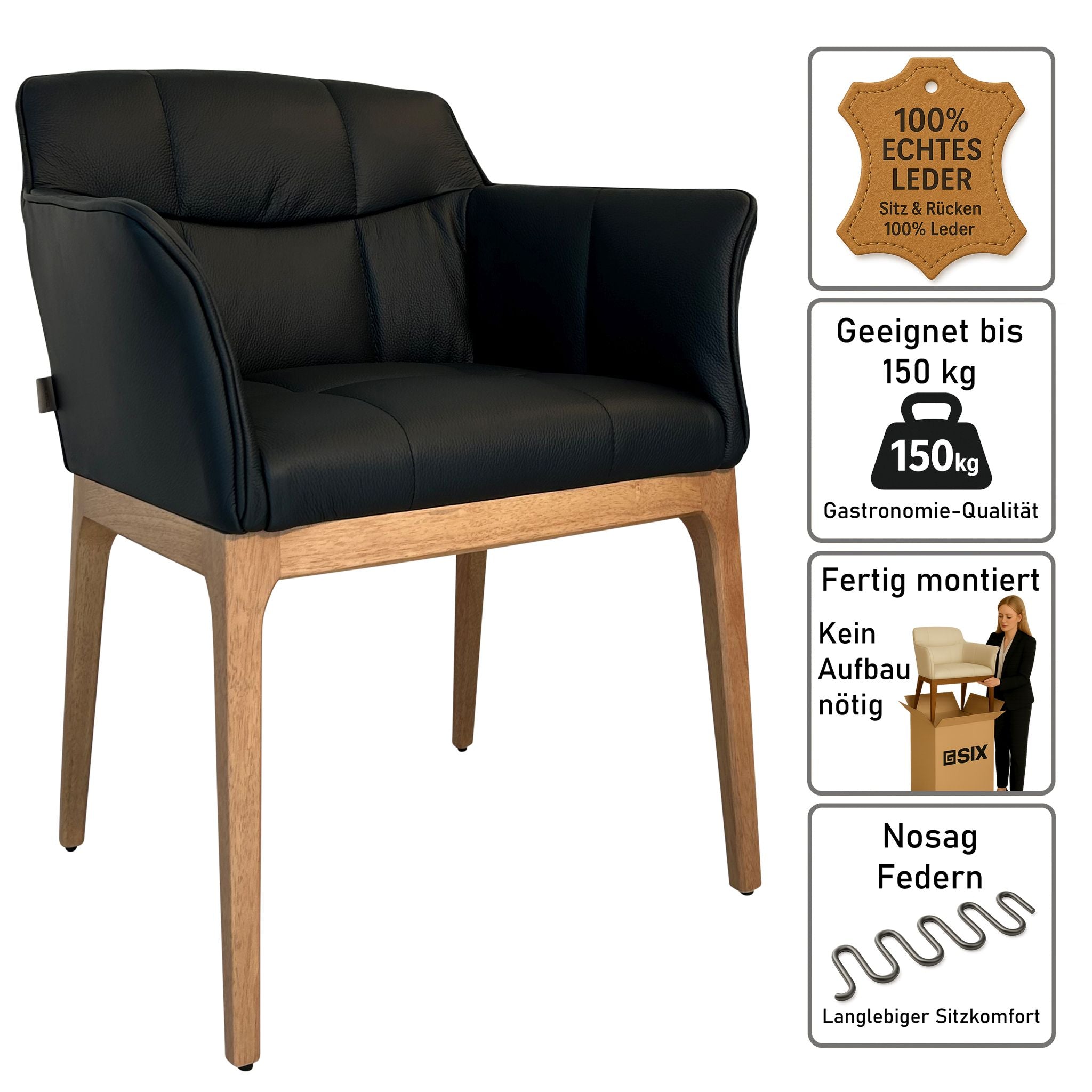 SIX Zeta Echtleder Esszimmerstuhl Armlehnenstuhl – Schwarz Eiche