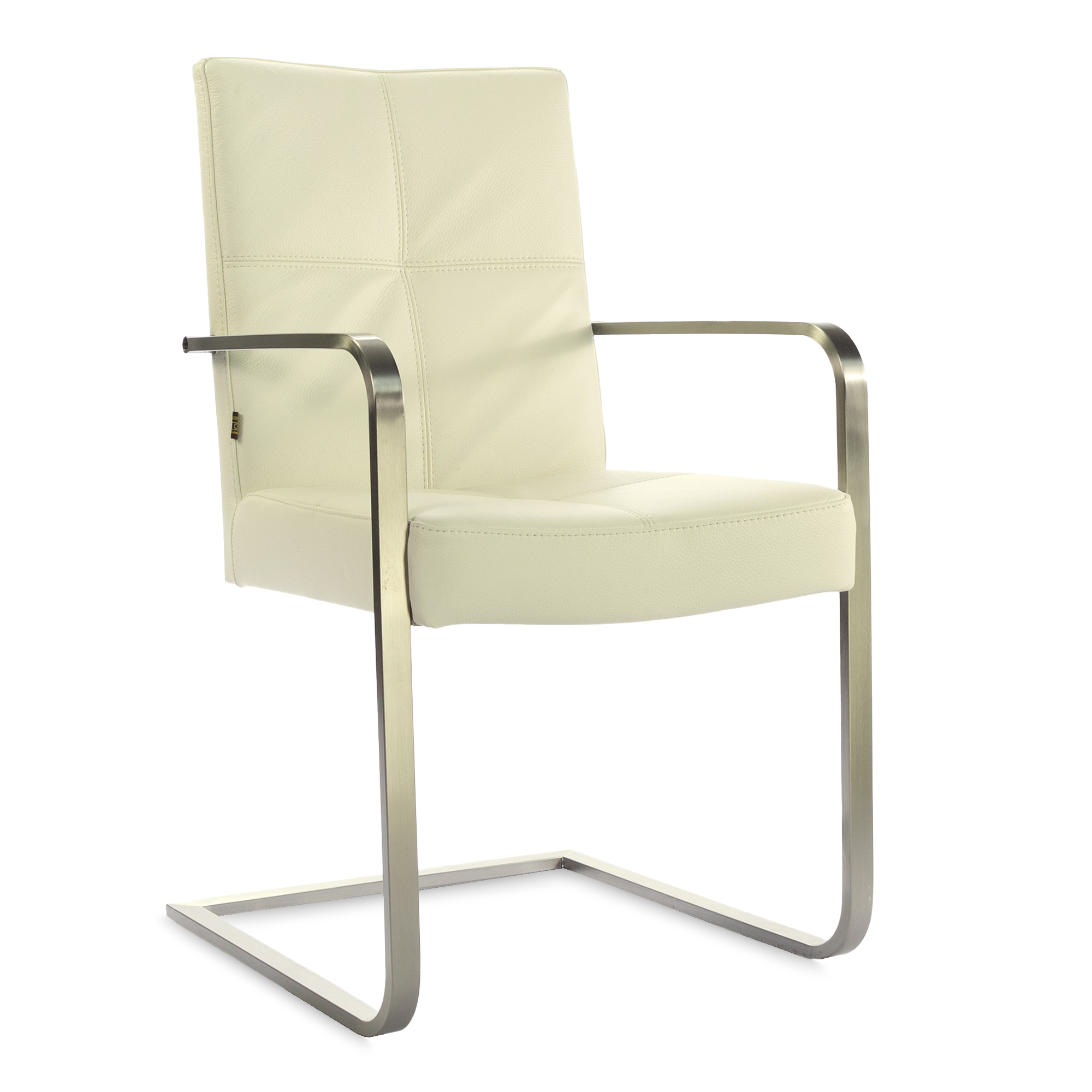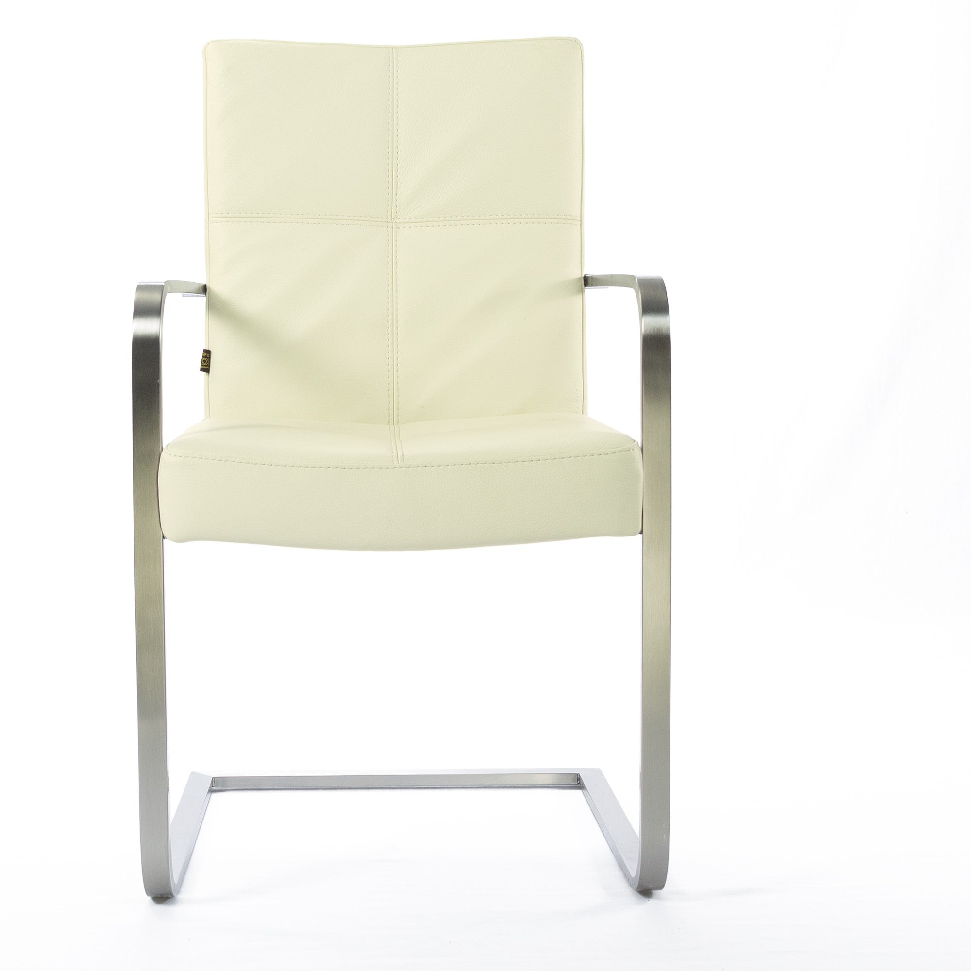 SIX Freischwinger Armlehnstuhl Libero Rindsleder Creme Weiß, Edelstahl
