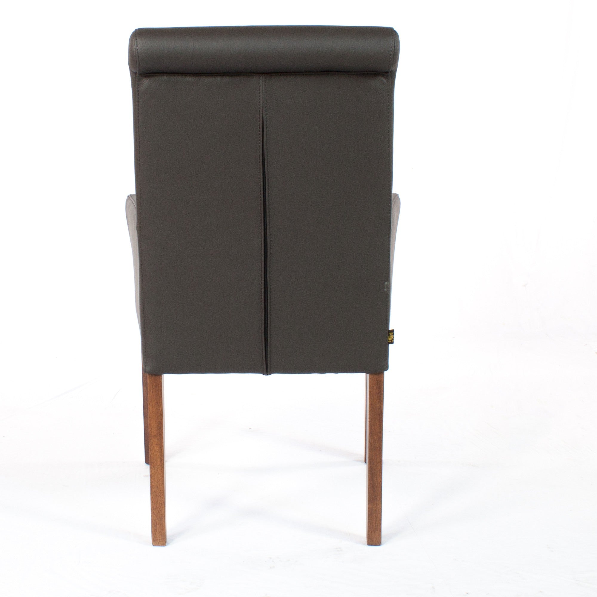 Lederstuhl - Armlehnstuhl Galdo Rindsleder Dark Braun Hochwertiger Armlehnstuhl in ECHTEM RINDSLEDER mit massivem Hartholz Stuhl - Aufbau. Dieser Armlehnstuhl - Polsterstuhl zeichnet sich durch seine hochwertige Verarbeitung und dem sehr guten Sitzkomfort aus. Dies wird erreicht durch einen extra starken Stuhl-Aufbau mit sehr massiven Stuhlbeinen und einem langlebigen Federkern im Sitz. Dieser ist auf einer festen Latex-Vergurtung aufgebracht und mit einem festen Schaumkern,mit einem hohen Raumgewicht, aufgepolstert.