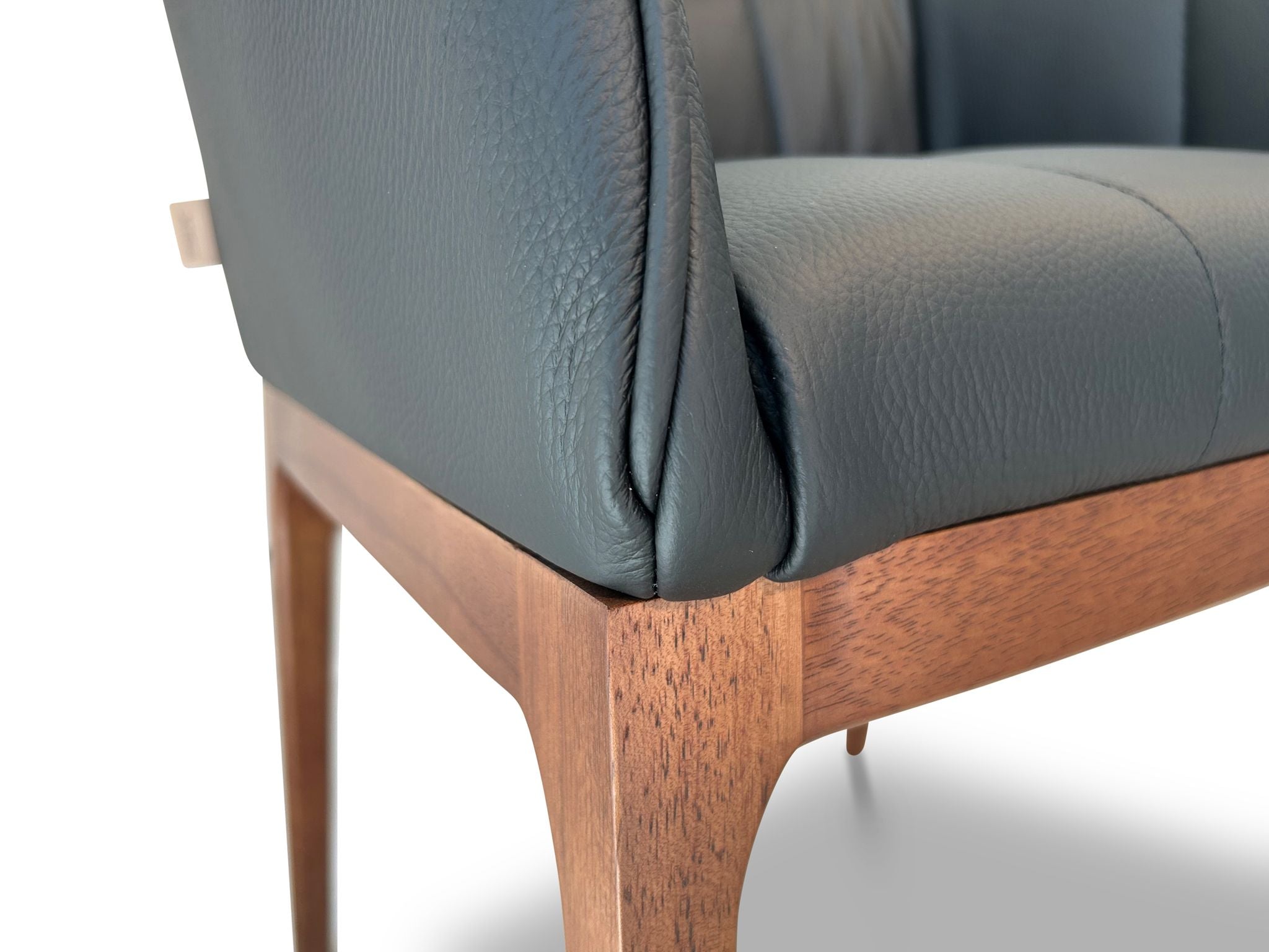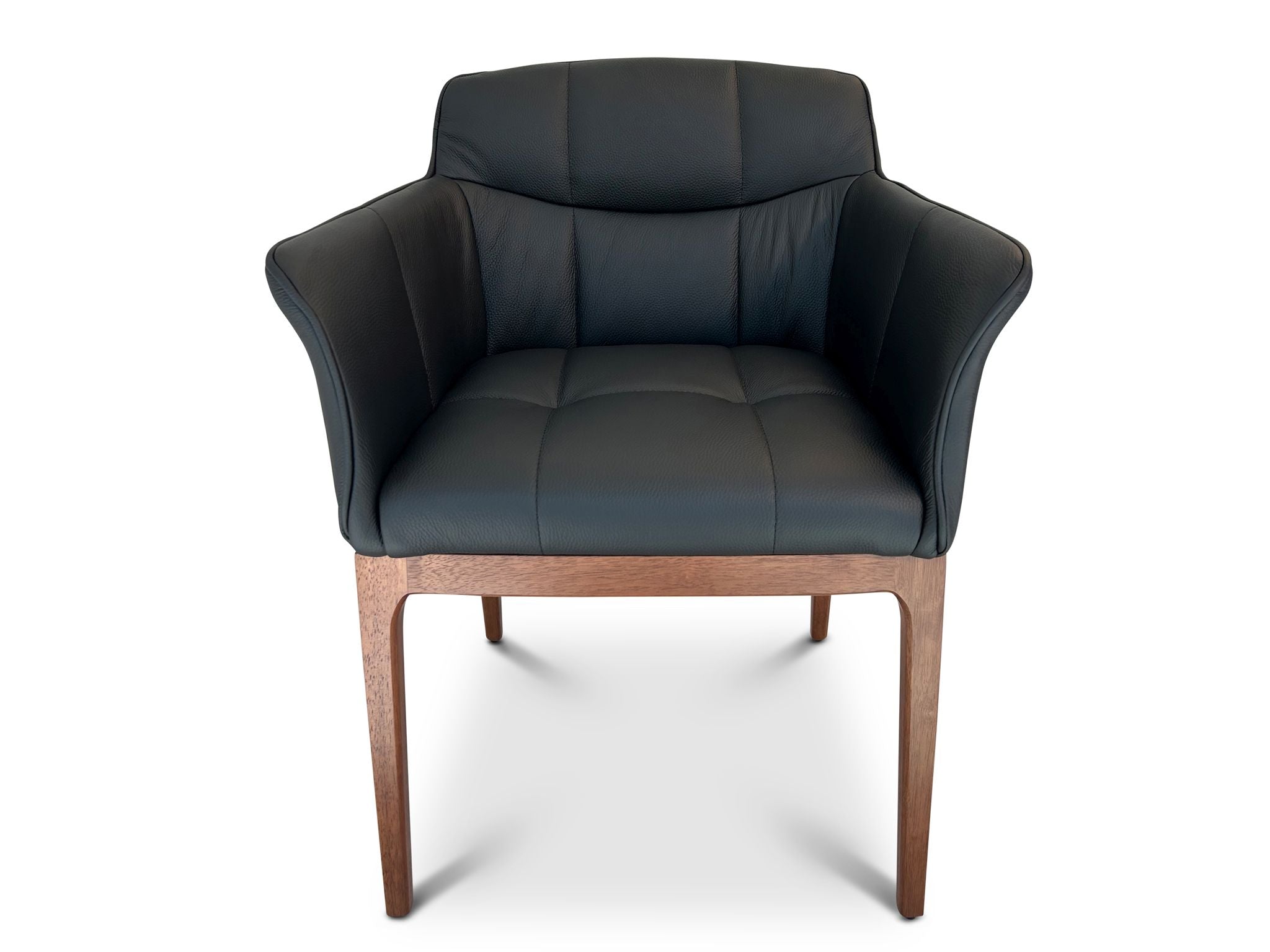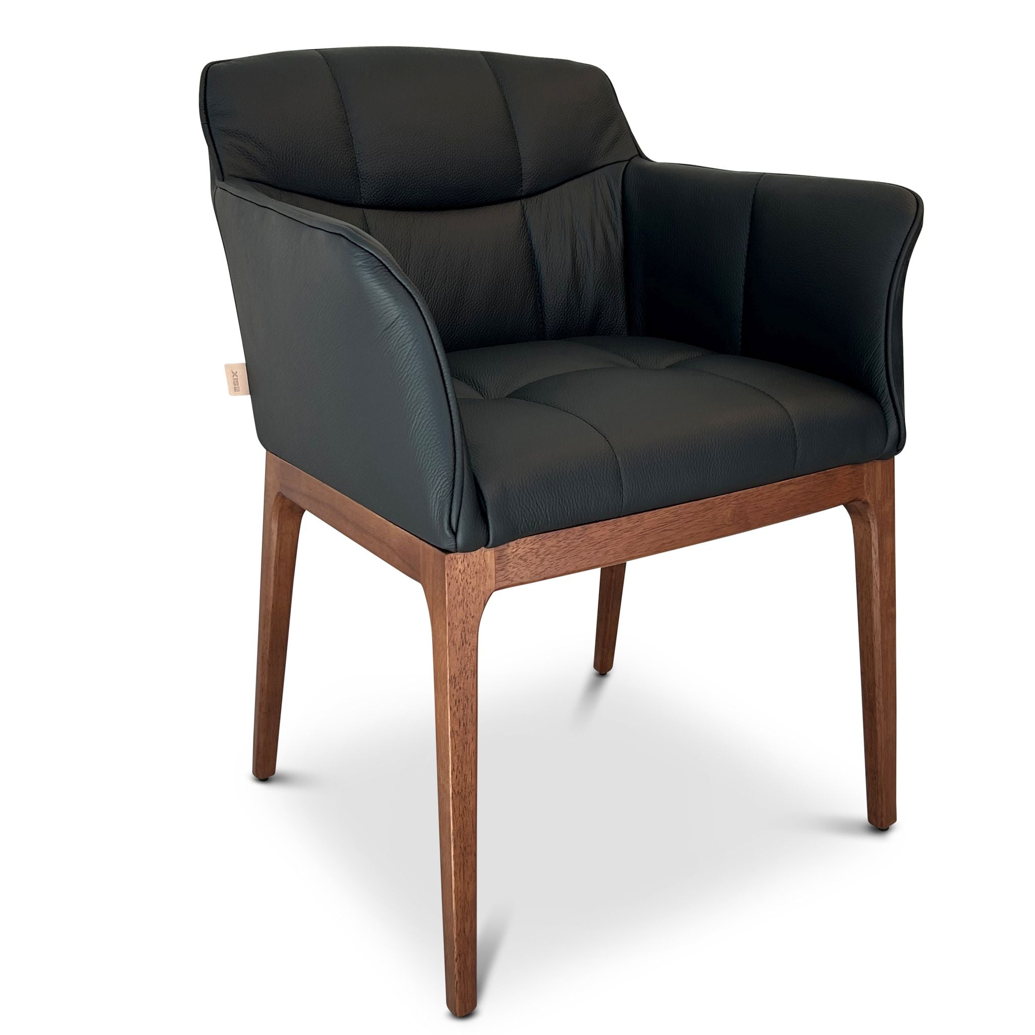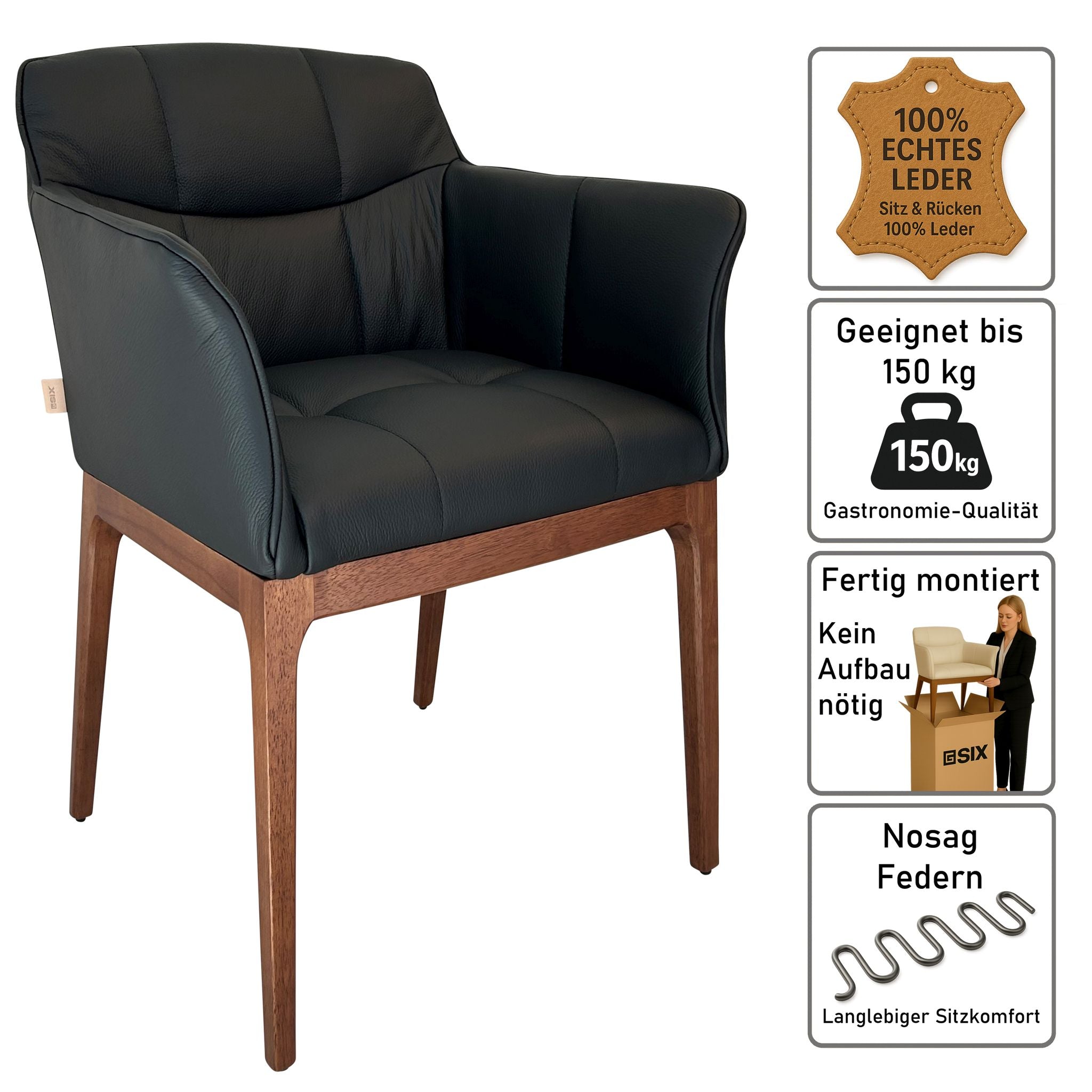 SIX Zeta Echtleder Esszimmerstuhl Armlehnenstuhl – Schwarz Nussbaum